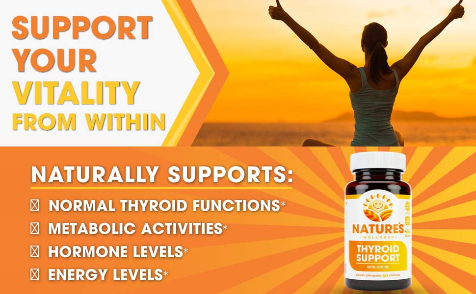 Natures Wellness Market Thyroid Support supplement is the most effective choice for combating hypothyroidism in both men and women. Helping thyroid functions in weight loss, improved energy, and daily fatigue. This thyroid supplement acts as an assistant for your thyroid, helping support an increased immune system, metabolism, and weight loss.