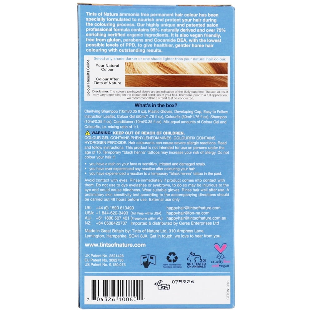 Tints Of Nature- Permanent Hair Color 8N Natural Light Blonde- 4.4 oz. (130 ml.) Tints Of Nature Conditioning Permanent Hair Color 8N Natural Light Blonde is the perfect golden girl color. Embrace your inner beach-goddess as a natural blonde bombshell. Sunny and gloriously golden, this shade gives you beautiful long-lasting colour and enhanced shine and body. Choose Natural Light Blonde to brighten hair that’s naturally medium blonde or lighter. Perfectly covers 100% of grey.Tints of Nature 218919 4.4 fl oz 7N Natural Light Blonde Permanent Hair Color