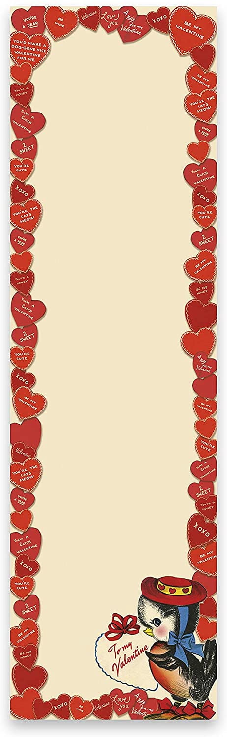 A list notepad featuring retro Valentine’s Day heart border and bird design with "To My Valentine" sentiment.