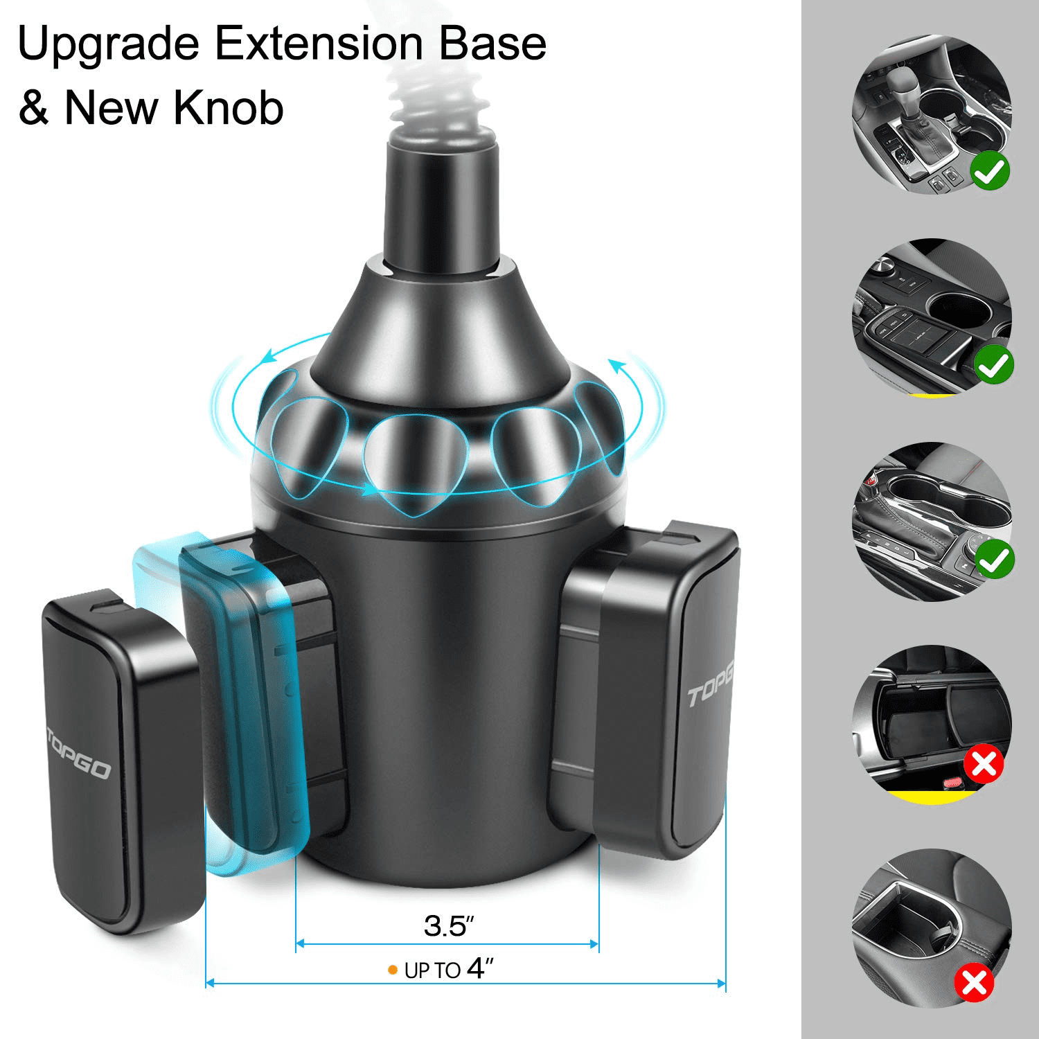 Adjustable cup, turn dial and bottom base will expand so you can use with any size cup holder