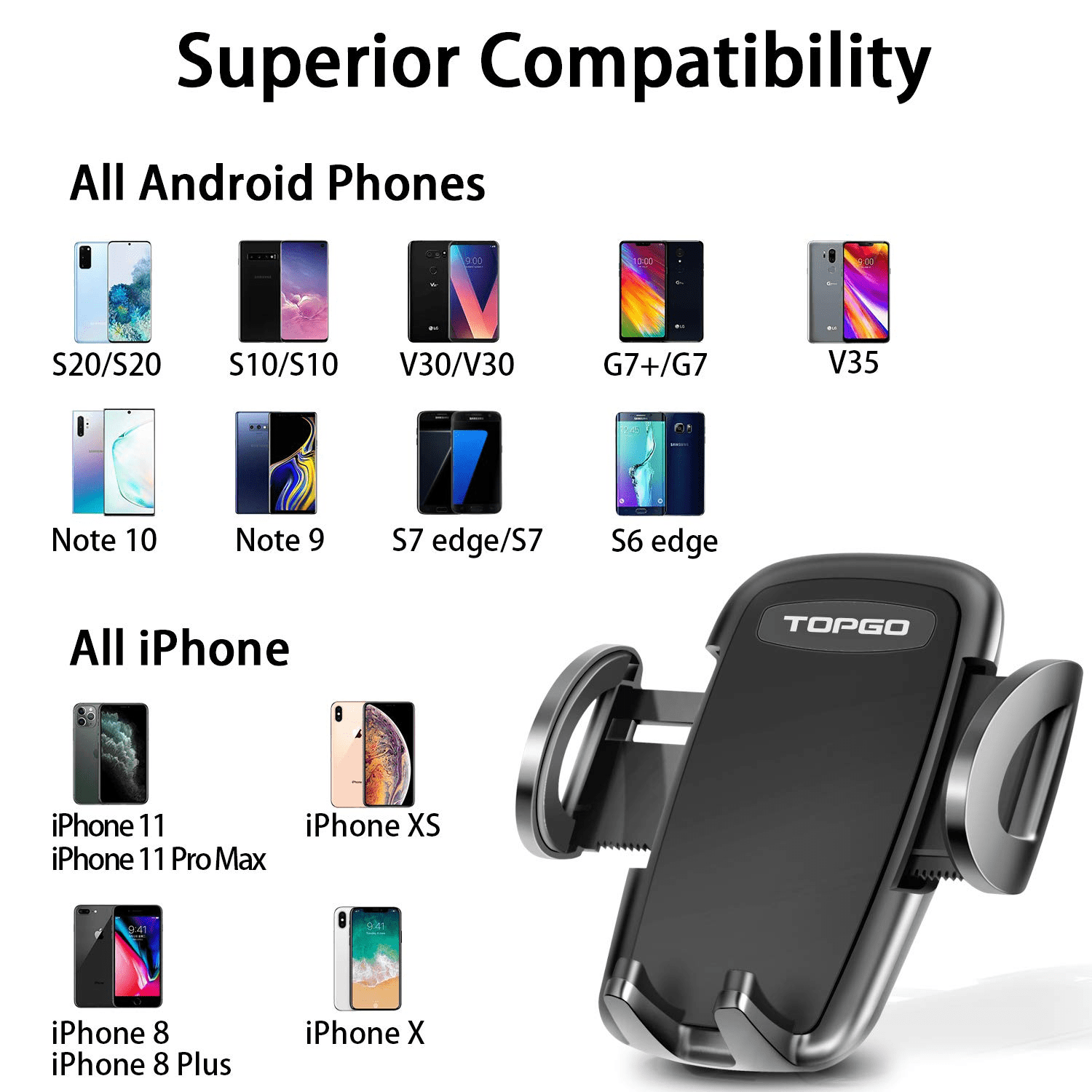 - [Broad Compatibility]: Suitable for all types of 2.01′ – 3.54′ wide devices, such as iPhone 13 Pro Max/12 mini/XS/XR/SE 2/8/7 Plus/6s, Samsung Galaxy S22/S21/S10+/S9 Plus/S8/S7 Edge/Note20, Huawei, One Plus, HTC, LG, MOTO, GPS, PSP, Google Pixel, Nexus, Nikia, Oppo, Palm, Realme, Vivo, Xiaomi, Honor, Asus, Lenovo, etc.