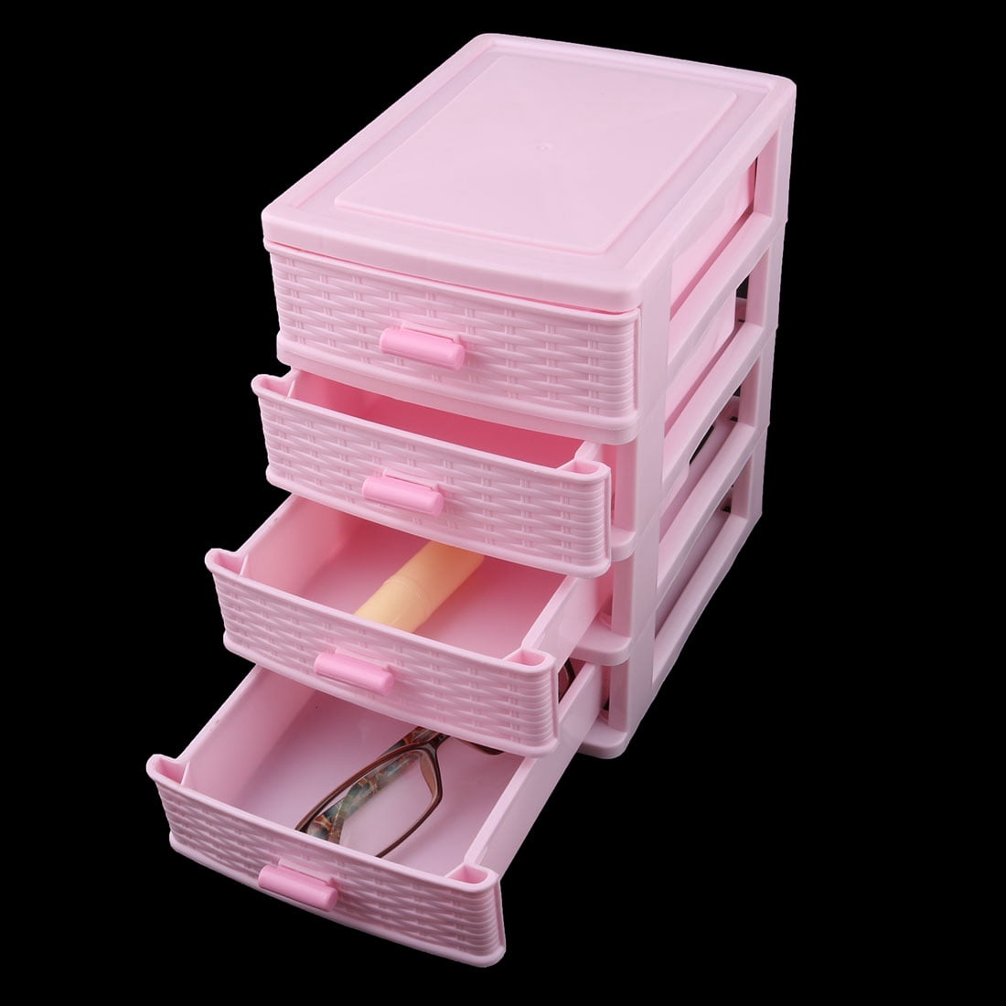 Uxcell Plastic Family Jewelry Pen Sundries Storage Cabinet Contanier Case Box 4 Layers Pink