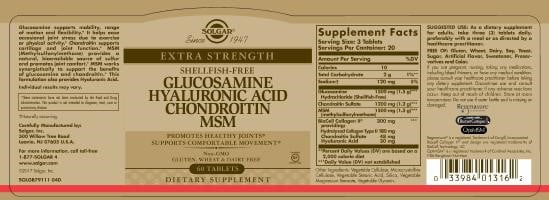 Solgar glucosamine hyaluronic acid chondroitin msm shellfish free 60 tablets