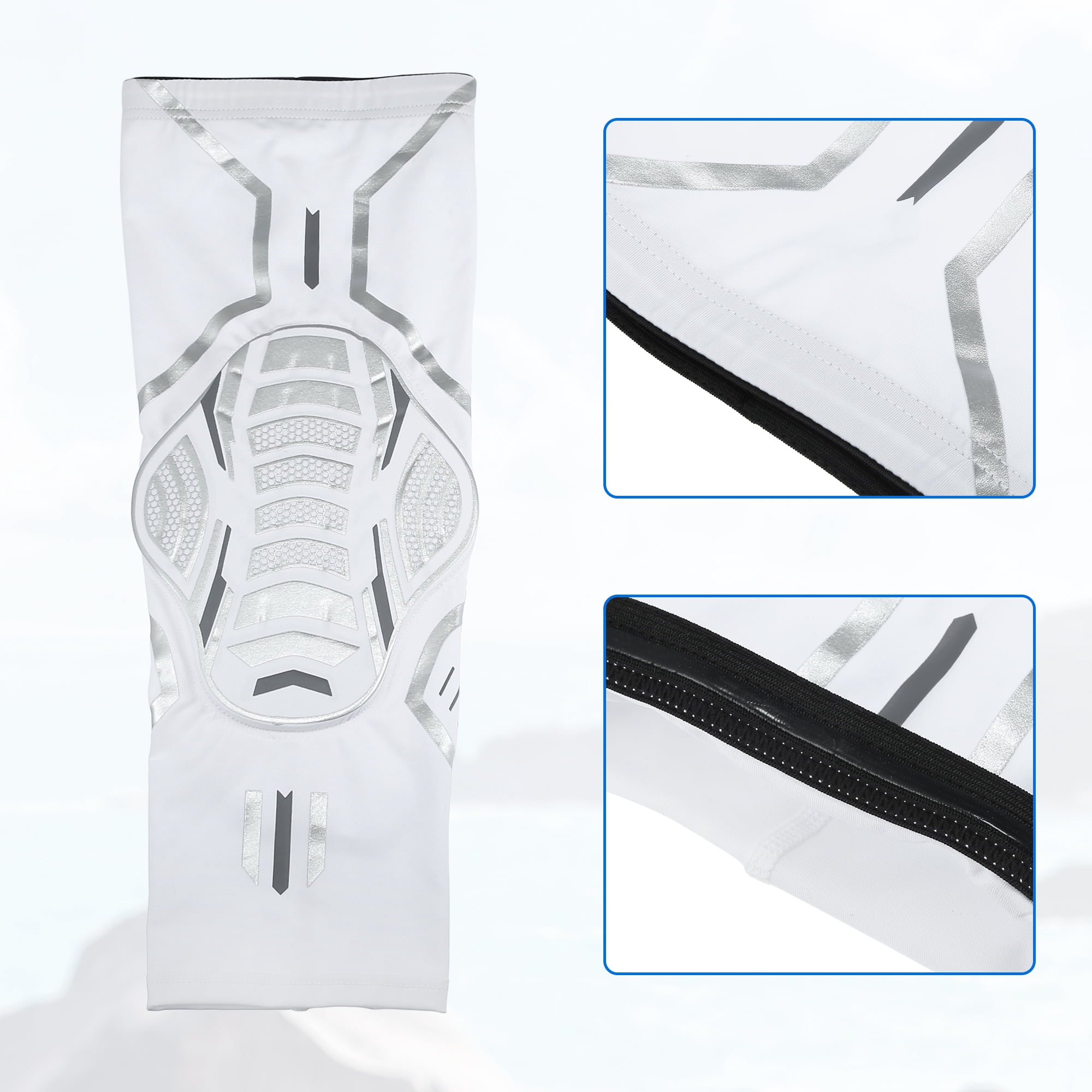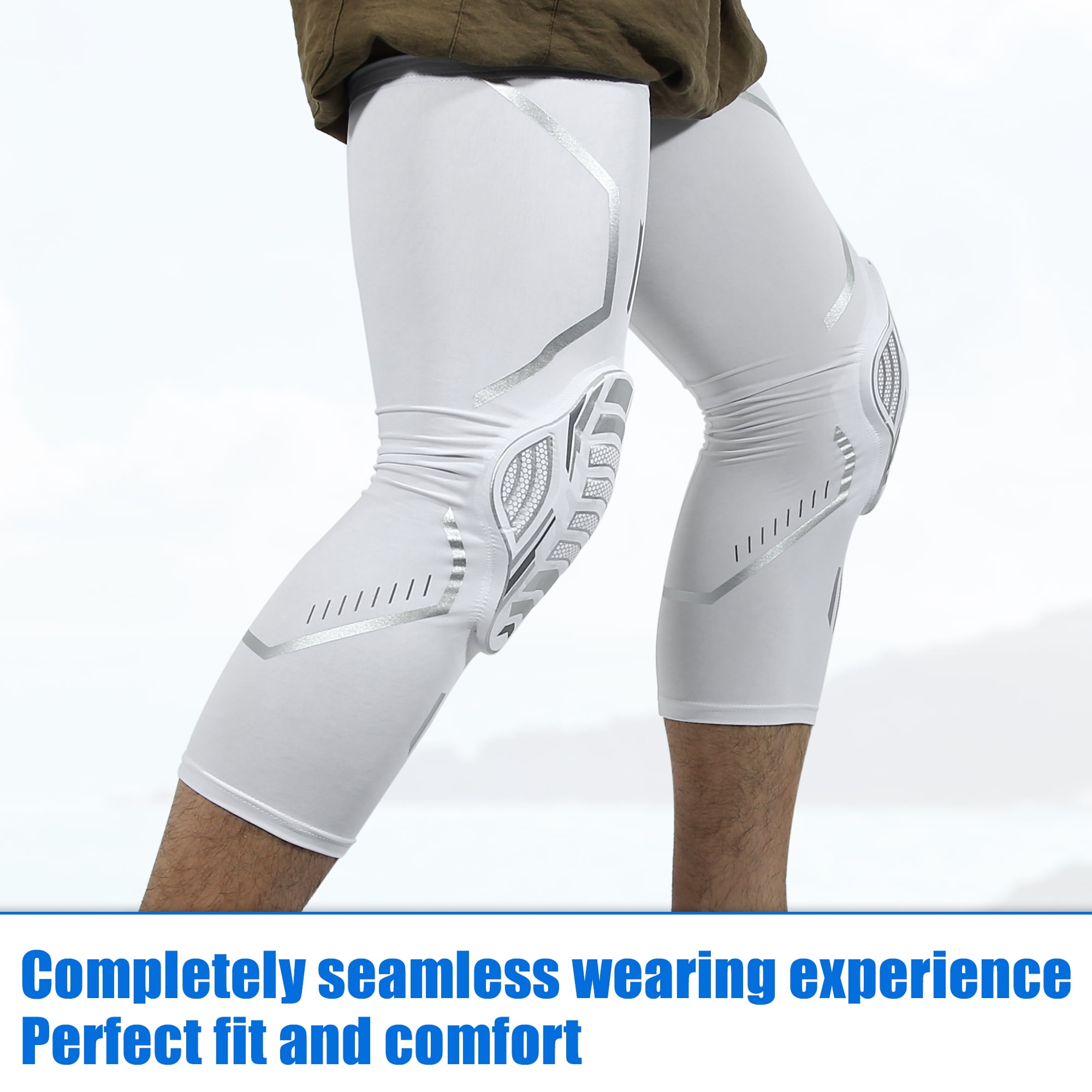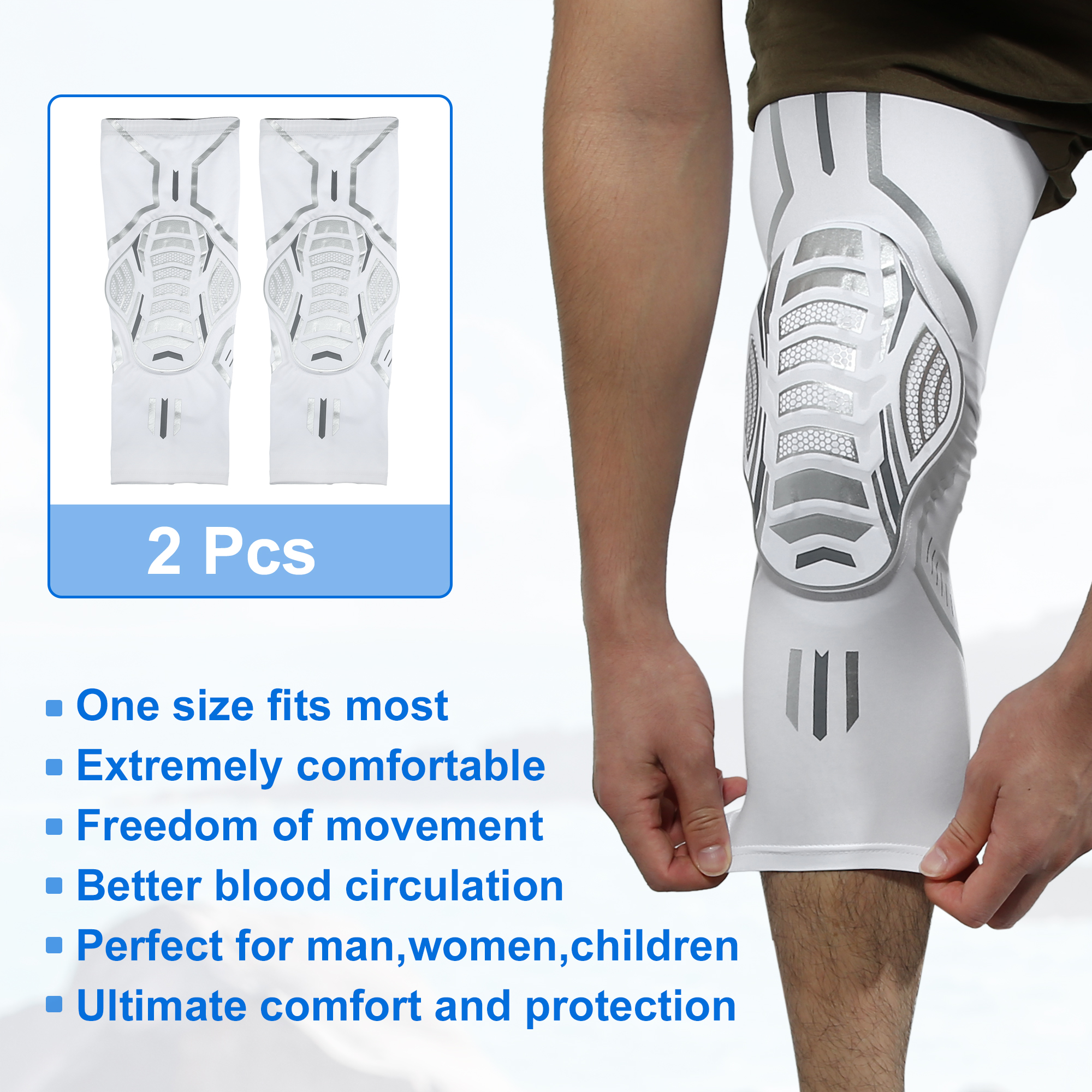 Stretchable Fabric: These knee braces are made of 85% nylon and 15% spandex, allowing you to easily slide them into place. Provide Protection: Wear these Knee Support Braces that can protect your knees and prevent muscle sprains and strains in sporting or fitness. 10mm Thick EVA Sponge: Come with a 10mm thick EVA sponge pad that is not easily deformed to protect your knees from crashes, with high elastic fitting, and effectively relax pain caused by impact. Apply to: Suitable for all activities and exercises that involve a great amount of stress on the joints like running, bicycling, hiking, basketball, football, soccer, volleyball, golf, tennis, skiing, weight training, and other sports.Vocoste 2pcs Compression Knee Braces EVA Padded Leg Sleeves Nylon White Size L
