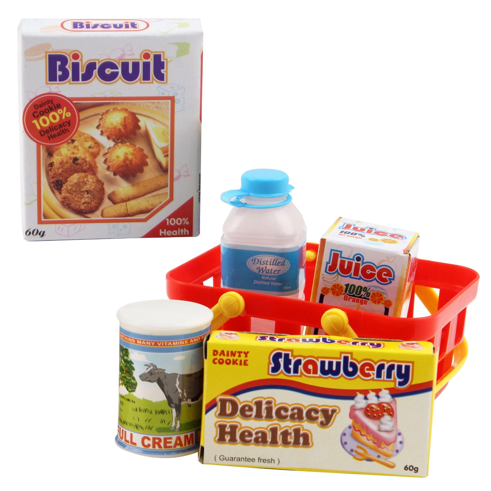- Includes shopping basket, grocery items and fake petty cash