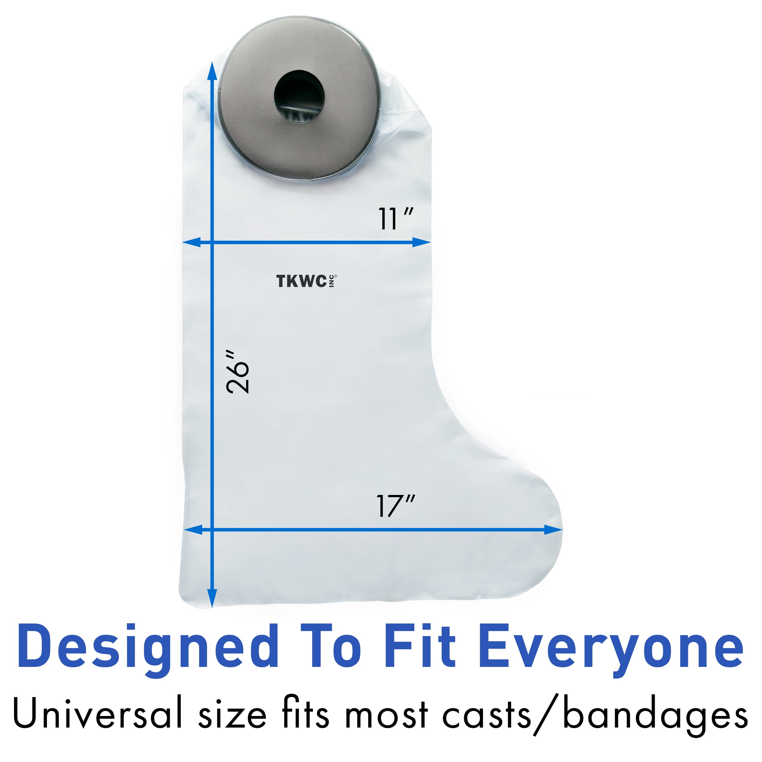 Essential for recovery for any below the knee injury, this cast and bandage protector will provide a watertight seal making showering difficulties a thing of the past. Different from traditional cast covers with a firm seal, this model has a soft, low pressure flexible seal against your skin. Ideal for use with casts, bandages, rashes, abrasions, burns, cuts, or wounds. The Cast Cover is designed to last the duration of your recovery, approximately 6-8 weeks. It is comprised of a neoprene and a non-latex membrane. The unit measures 26" from top to bottom and is 17" at the widest part. The unique seal is designed to custom fit most users.