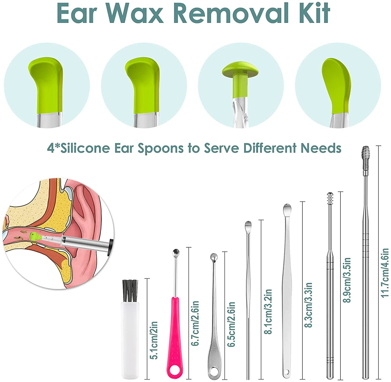 ✅【Quality Guarantee】- The smooth silicone ear scoops are equipped with rounded corners and a suitable inclination angle, which can not only effectively clean the ear wax, but also will not scratch the flesh of the hearing. Package includes 6 traditional ear wax removal kits as a gift. If you have any questions, please feel free to contact us. HaYiue support team will try to resolve all issues.