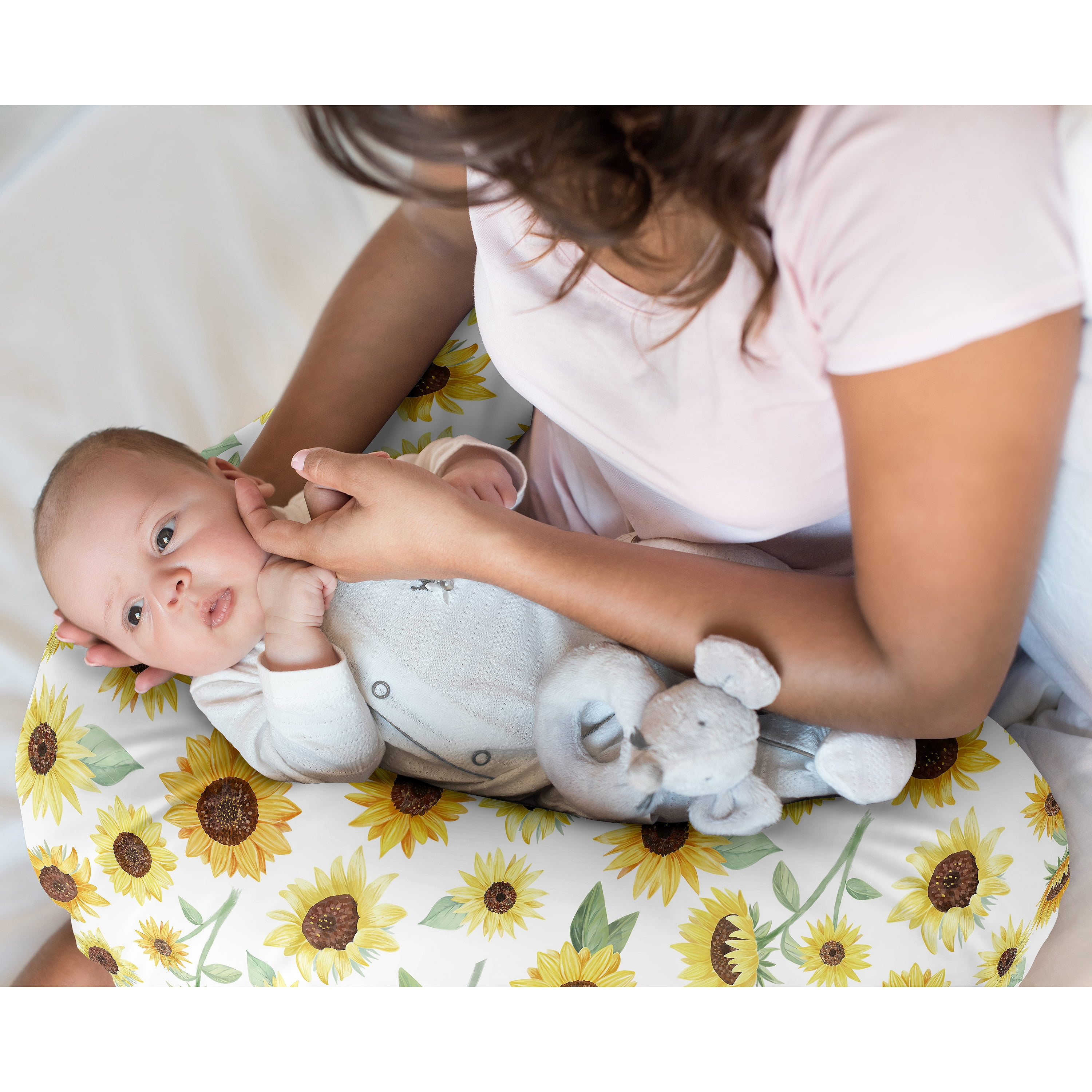 Yellow Boho Sunflower Nursing Pillow Cover Case (Pillow Not Included) by Sweet Jojo Designs