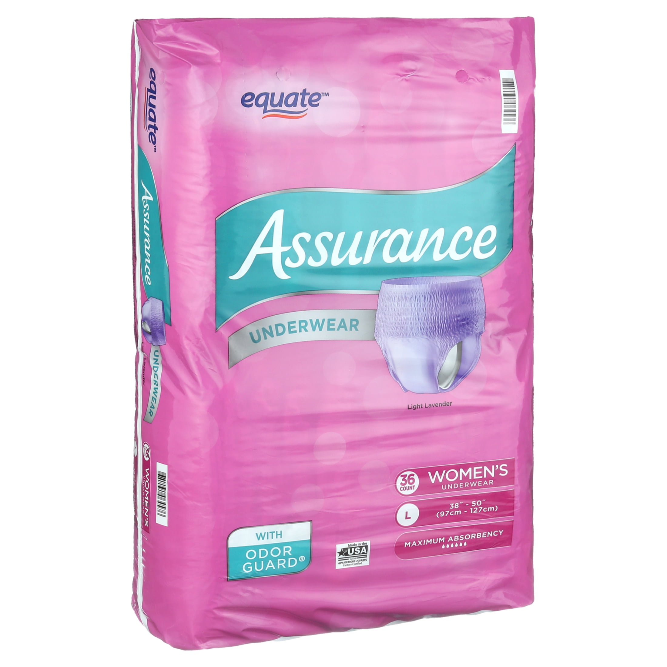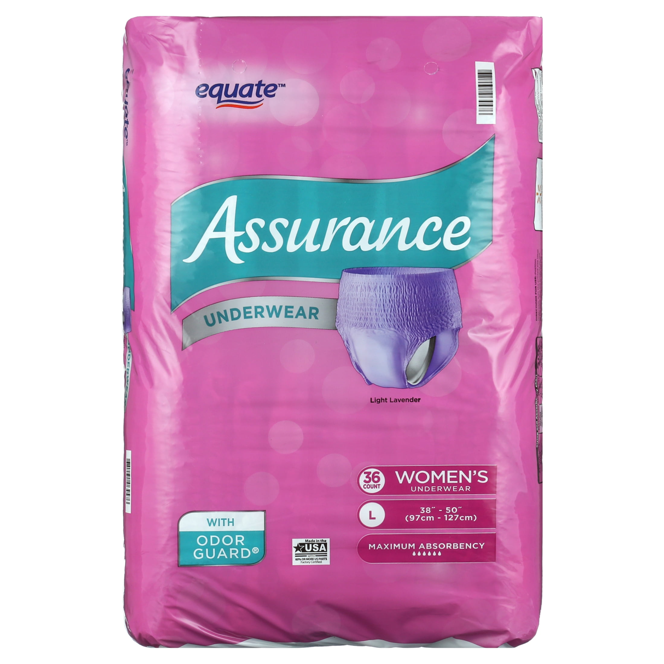Assurance Incontinence & Postpartum Underwear for Women, Maximum Absorbency, L, 36 Count: