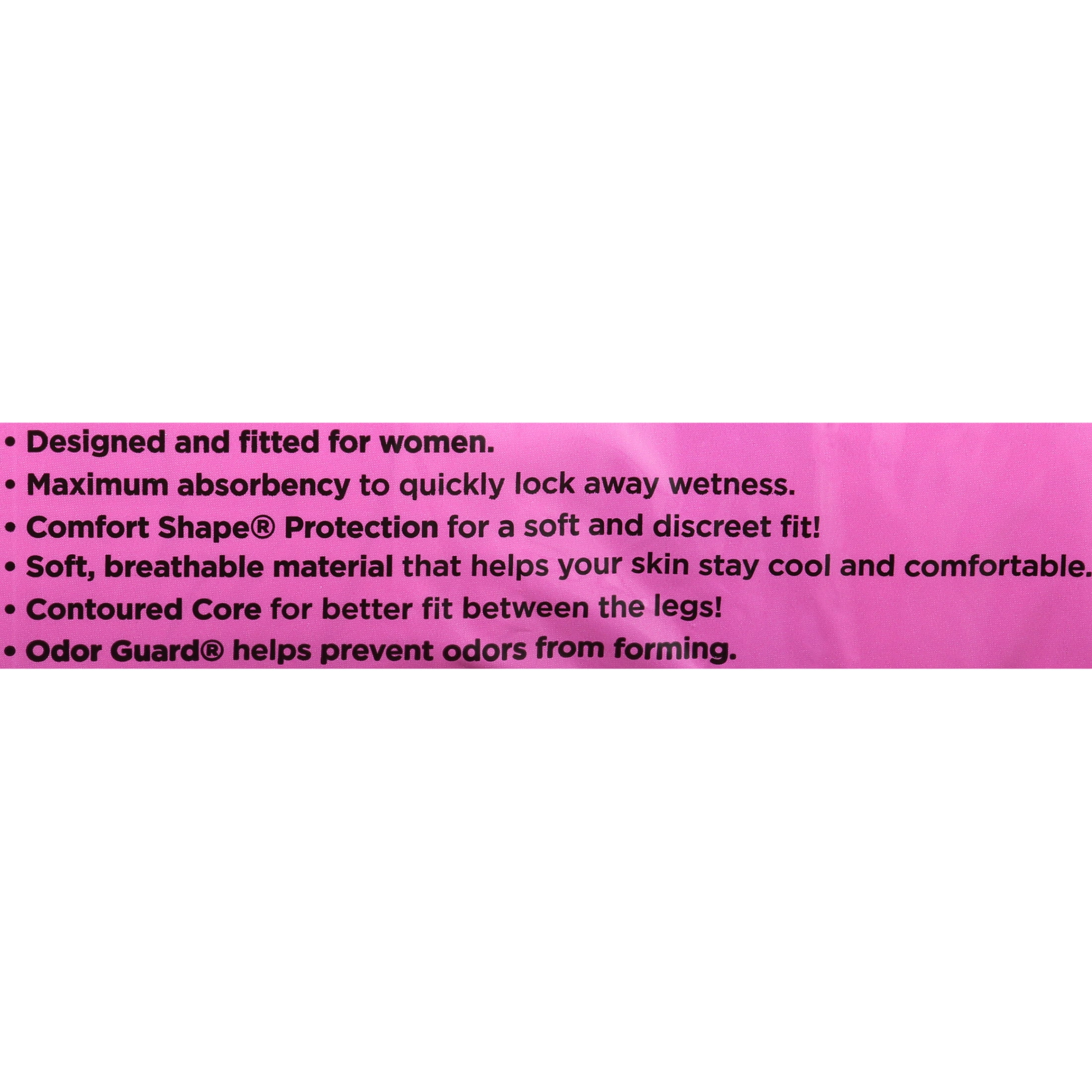 Assurance Incontinence & Postpartum Underwear for Women offers you discreet and comfortable protection with a product you can depend on. This women’s disposable underwear offers maximum absorbency that locks away moisture to keep you dry. It is specifically designed with a contoured core that allows a better fit between the legs. Plus, the breathable material allows you to stay cool and happy and the Odor Guard helps to keep odor from forming. They come individually wrapped for convenient and discreet access in your purse, gym bag, or glove compartment in your car. This underwear can be worn day or night. The size large is made to fit a waist of 38 inches to 50 inches in diameter. Get maximum absorbency with Assurance Incontinence & Postpartum Underwear for Women.