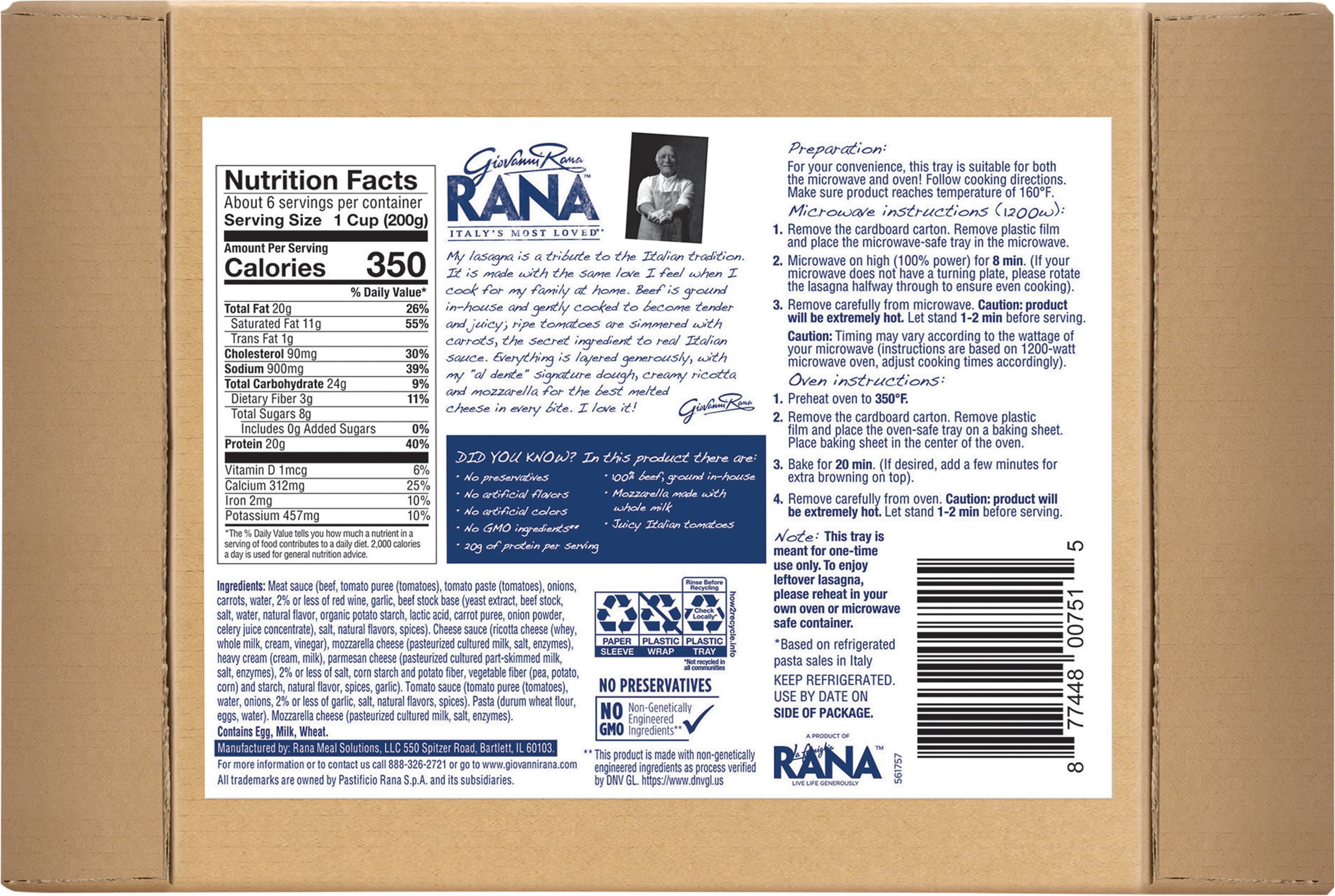 Giovanni Rana Homestyle Lasagna Meat Premium Prepared Entrée Tray (Family Size, 40oz)