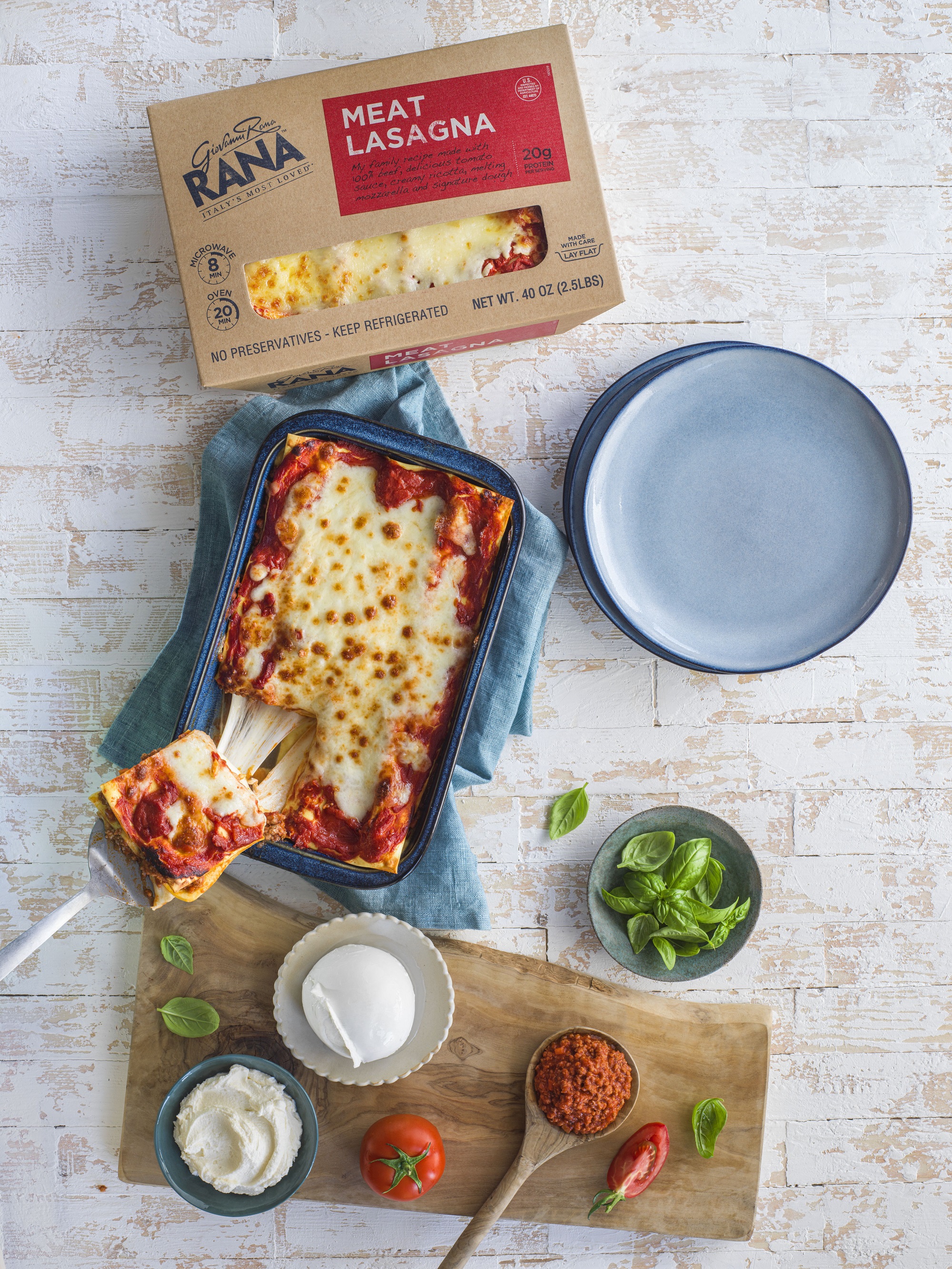 Our lasagnas are very different from frozen varieties. Since Rana refrigerates our lasagna items, we preserve the flavors and texture of the ingredients. They freshly made, with natural ingredients and no preservatives, producing flavors which are restaurant or homestyle quality. They are fully cooked and ready to enjoy in a very short time, which enables our customers to make a special family meal on any weekday in a snap! We use creamy ricotta, parmesan and whole milk mozzarella in the Meat Lasagna, and use creamy ricotta and whole milk mozzarella, fontina, mascarpone and parmesan in the 5 Cheese Lasagna.
