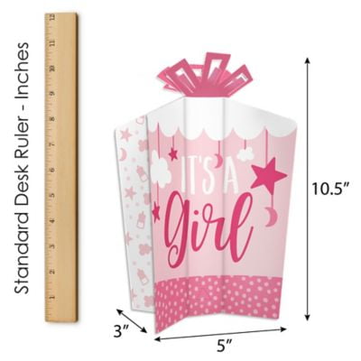 - EASY TABLE DECOR: Each It’s a Girl centerpiece SIZE 5 inches wide (front/back) x 3 inches wide (sides) x 10.5 inches tall. This 10 count table decorations set requires easy folding to flare out each centerpiece at your desired look. Easy DIY folding assembly: Use a flat surface to fold along the scored creases to stand the centerpiece upright and be able to balance on its own.