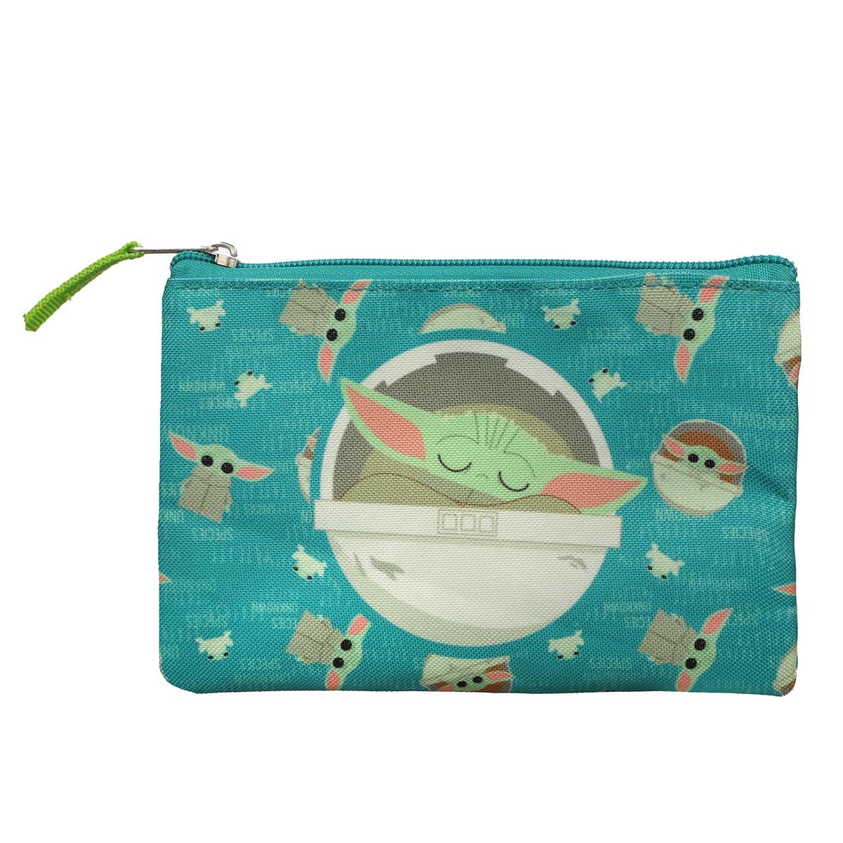 Bring Grogu along with you on your bounty hunting travels! This officially licensed Star Wars Mandalorian Grogu stylish mini polyester duffel bag includes a lanyard for top secret access, a tricot constructed sleep mask for those rare shut-eye moments, and a neoprene miniature carry case for your ear buds or whatever else you need to bring along on your adventures. Duffel bag measures 14 inches wide by 8.5 inches long by 6.5 inches tall. Mini carry case measures 7.5 inches wide by 5 inches tall. Great for overnight packing and 1 to 2 day travel.