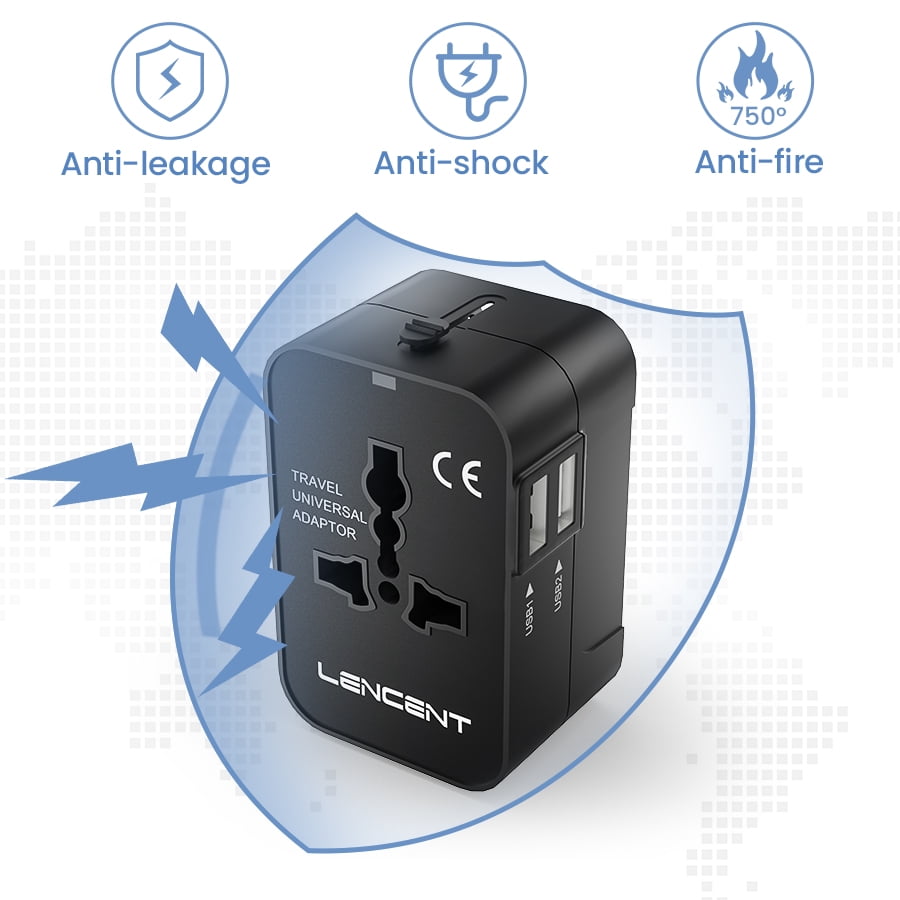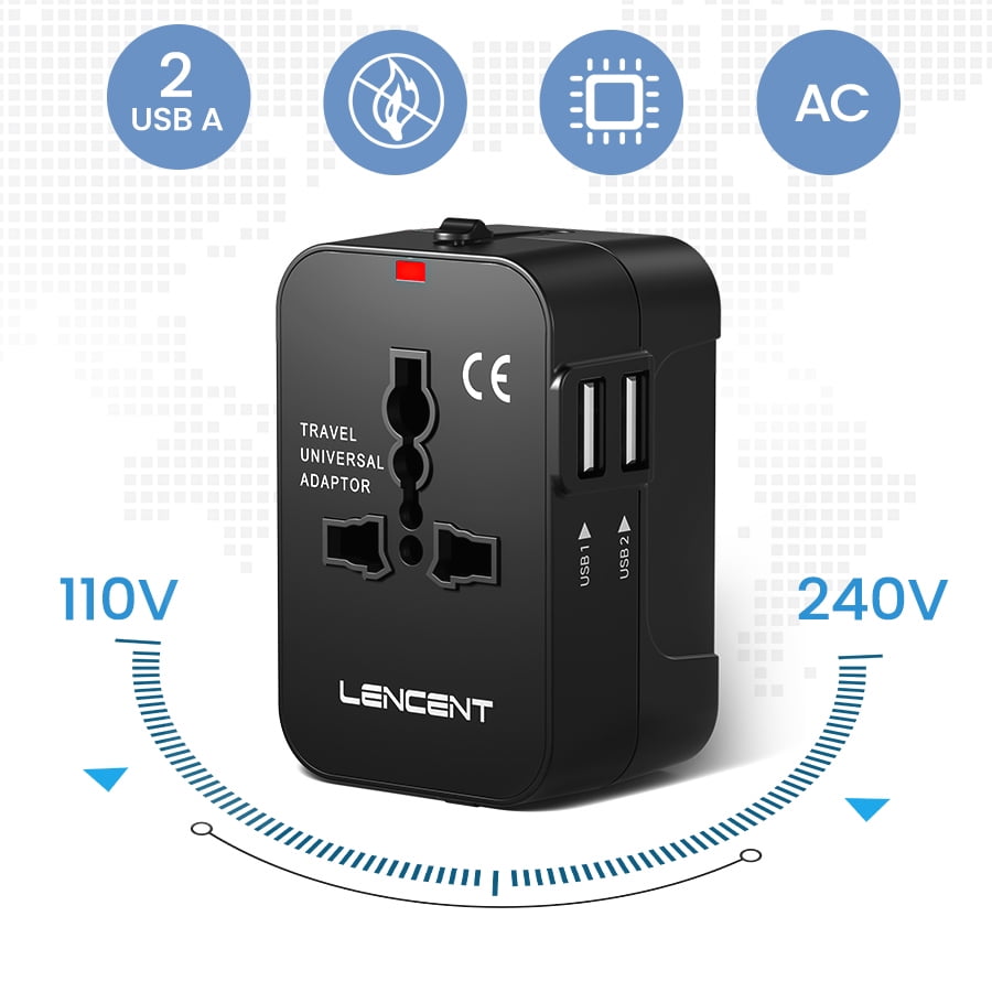 - Universal Travel Adapter – The LENCENT charger, travel adapter is designed with a universal AC outlet and multiple plugs, including US / American, UK, Australian, Canadian, and EU plugs, so it can cover 150 countries, wherever you go