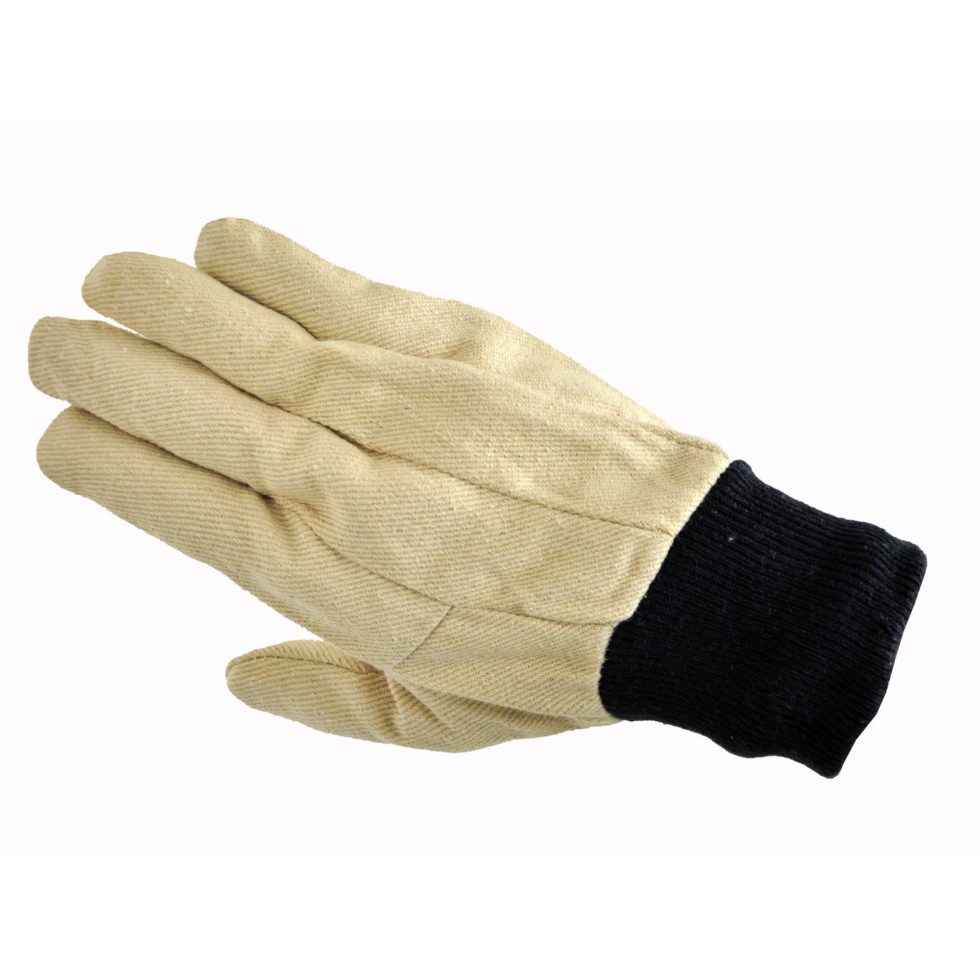 These all-purpose canvas gloves are 100% percent cotton with a knitted wrist cuff. Constructed with a clute cut and straight thumb, these gloves are useful for any type of yard or garden work, as well as for any job around the house.