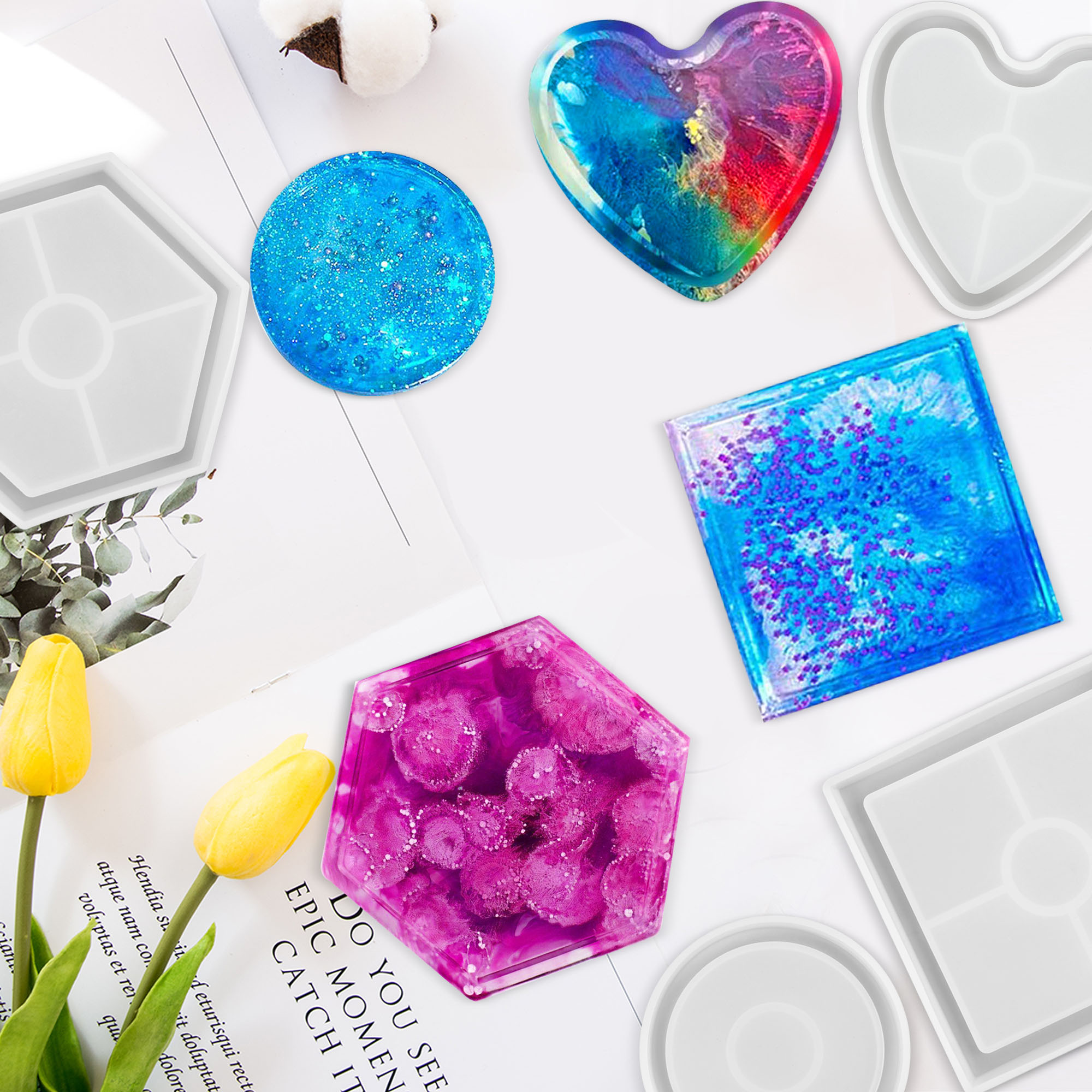 LotFancy 5 Coaster Molds for Resin Casting, Epoxy Resin Molds