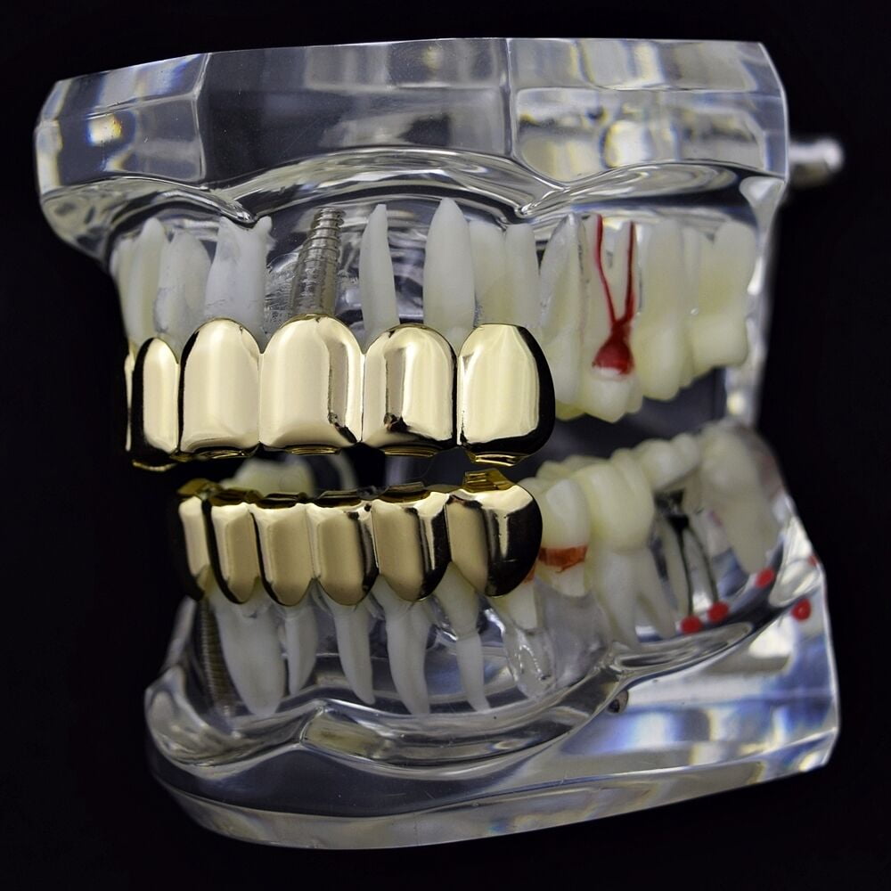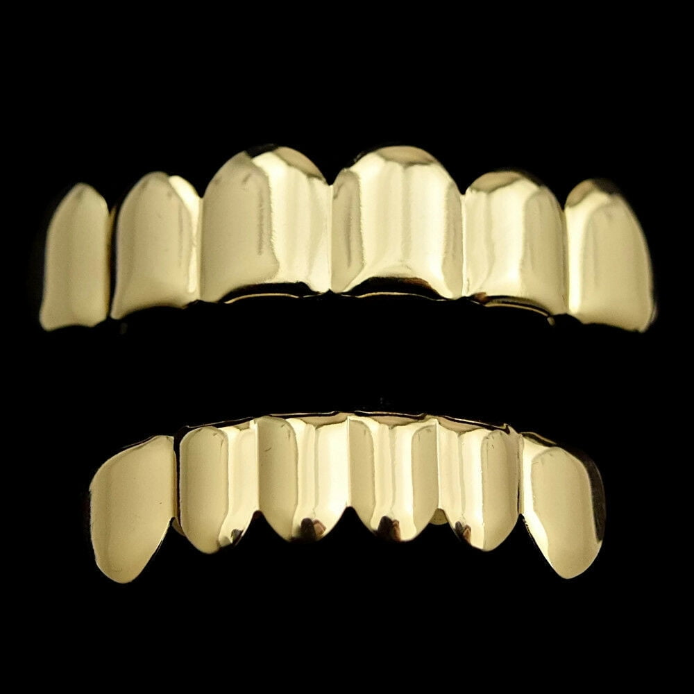 - Top & bottom teeth hip hop grillz set.