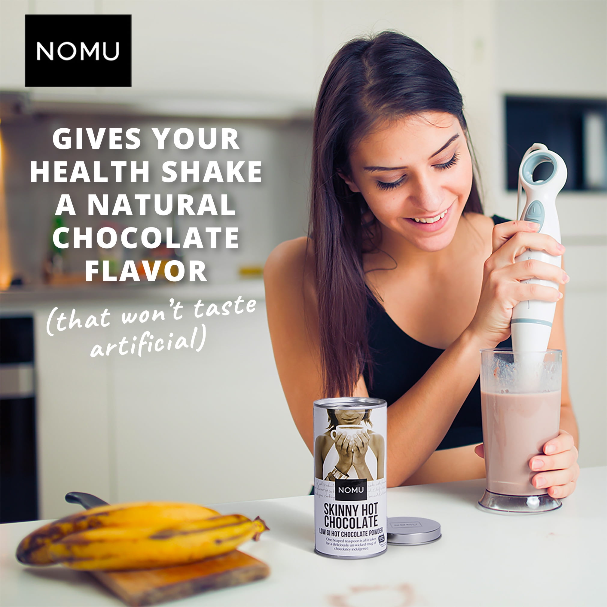 NOMU Skinny 60% Cocoa Hot Chocolate (33 cups) is delicious sugar free hot cocoa with no artificial oils, it has a natural rich flavor. Our goal was to be able to say, delicious, low calorie, keto friendly, healthy and hot chocolate mix in the same sentence. Together with diet nutritional experts, we achieved our goal with the Skinny Hot Chocolate. Ideal for those wanting to still enjoy their Hot Cocoa drink while also trying to maintain a low carb weight loss diet nutrition goal. Our Skinny Hot Chocolate makes an amazing mocha coffee as you only need 1 teaspoon to make it. Zero effort in adding it to your smoothies or in combination with keto MCT oils for indulgent choc flavor! This hot chocolate mix also known as the skinny mix is a big advance in what diet keto hot cocoa mixes should be like.