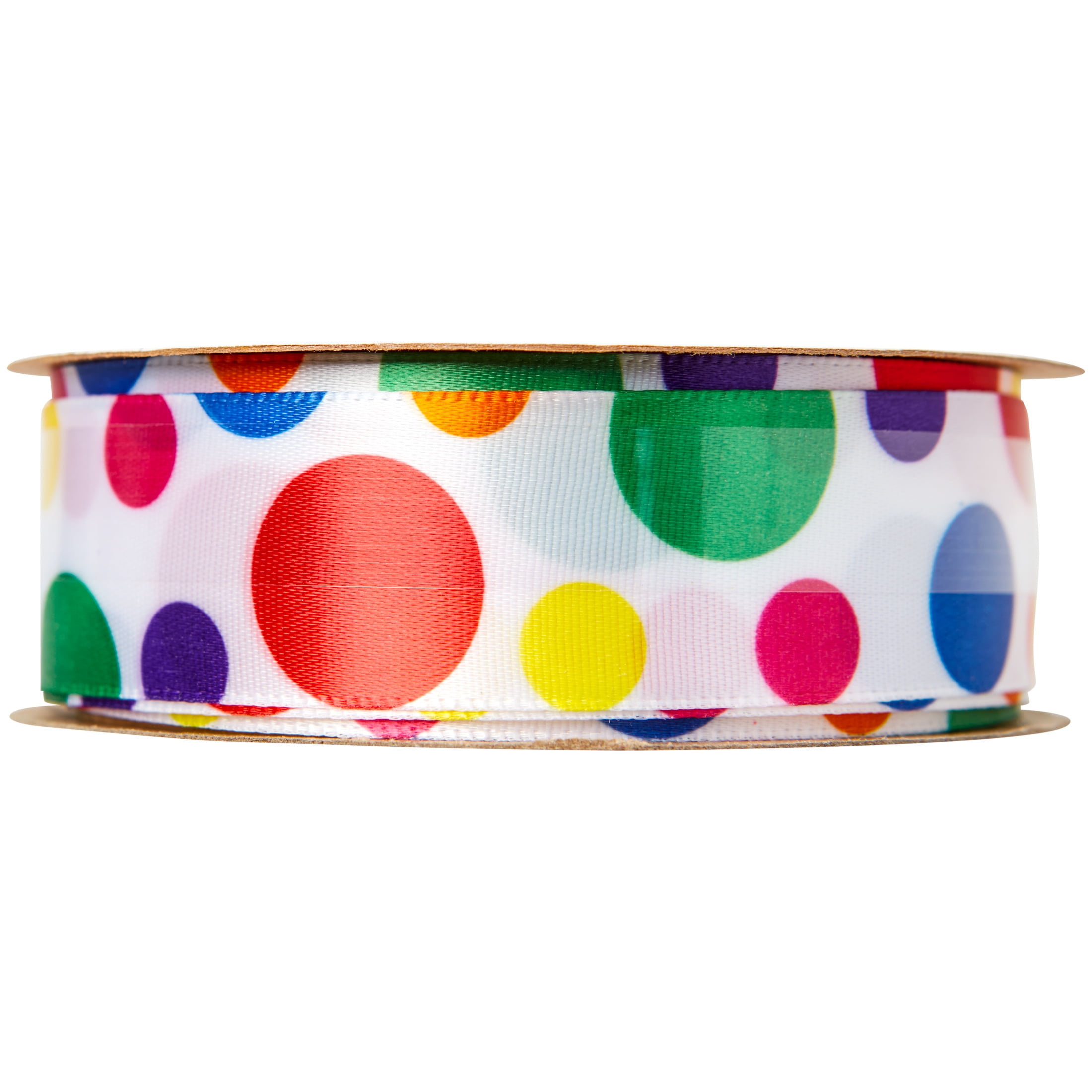 Offray Ribbon, White 7/8 inch Dot Satin Ribbon for Sewing, Crafts, and Gifting, 9 feet, 1 Each:
