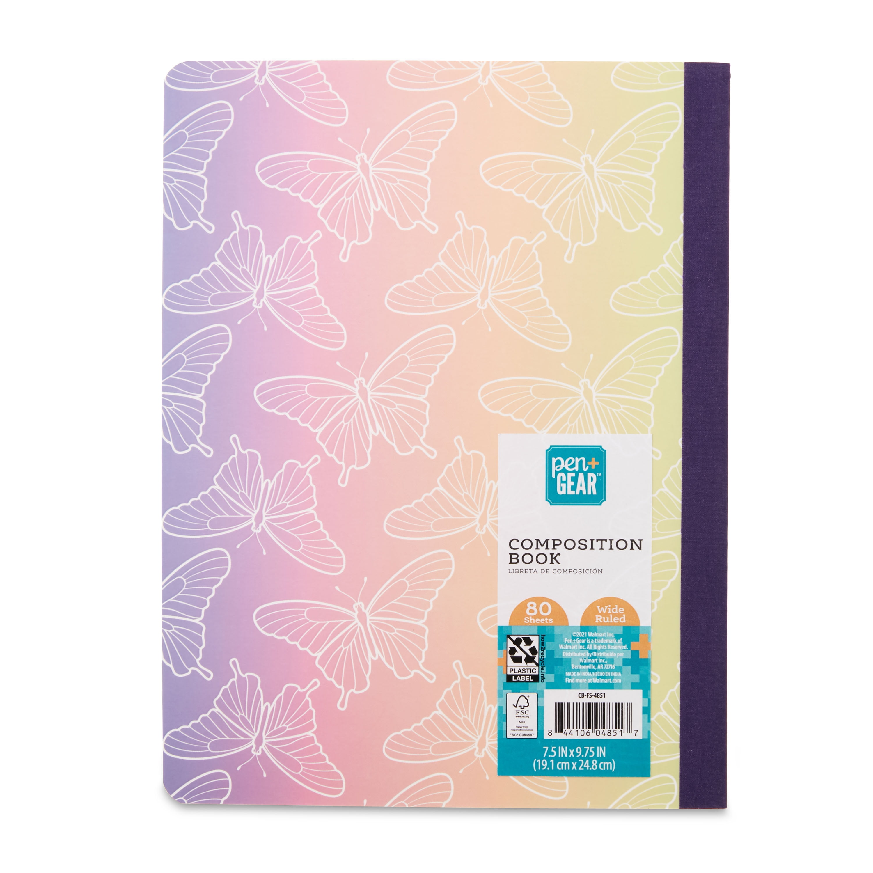 Pen+Gear Composition Book, Ombre with Butterflies, Wide Ruled
