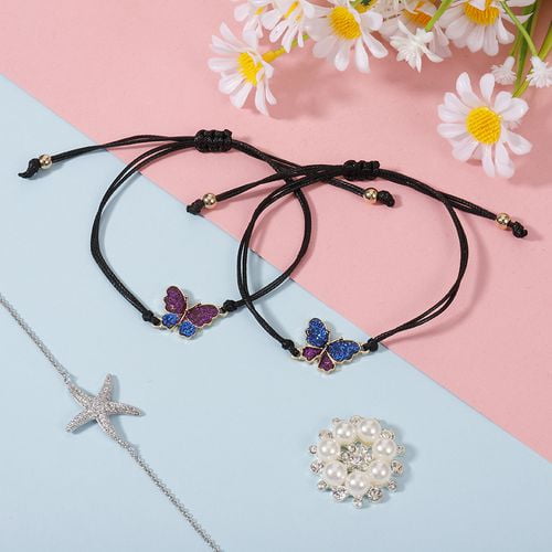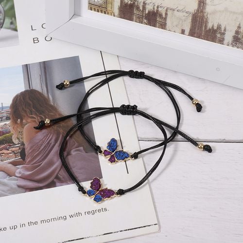 2Pcs/Set Butterfly Friendship Matching String Bracelets for Women Girls Mother Daughter Couples