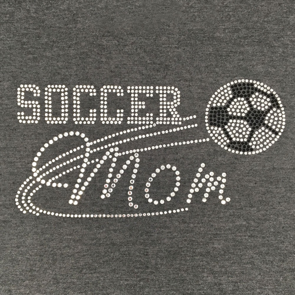 Soccer Moms ROCK! Show your love of the sport with this Soccer Mom iron-on rhinestone clear crystal transfer! This transfer can be applied with a household iron or with a heat press. Size 3.5" x 7".Soccer Mom Ball Clear Iron-on Rhinestone Transfer by JCS Rhinestones