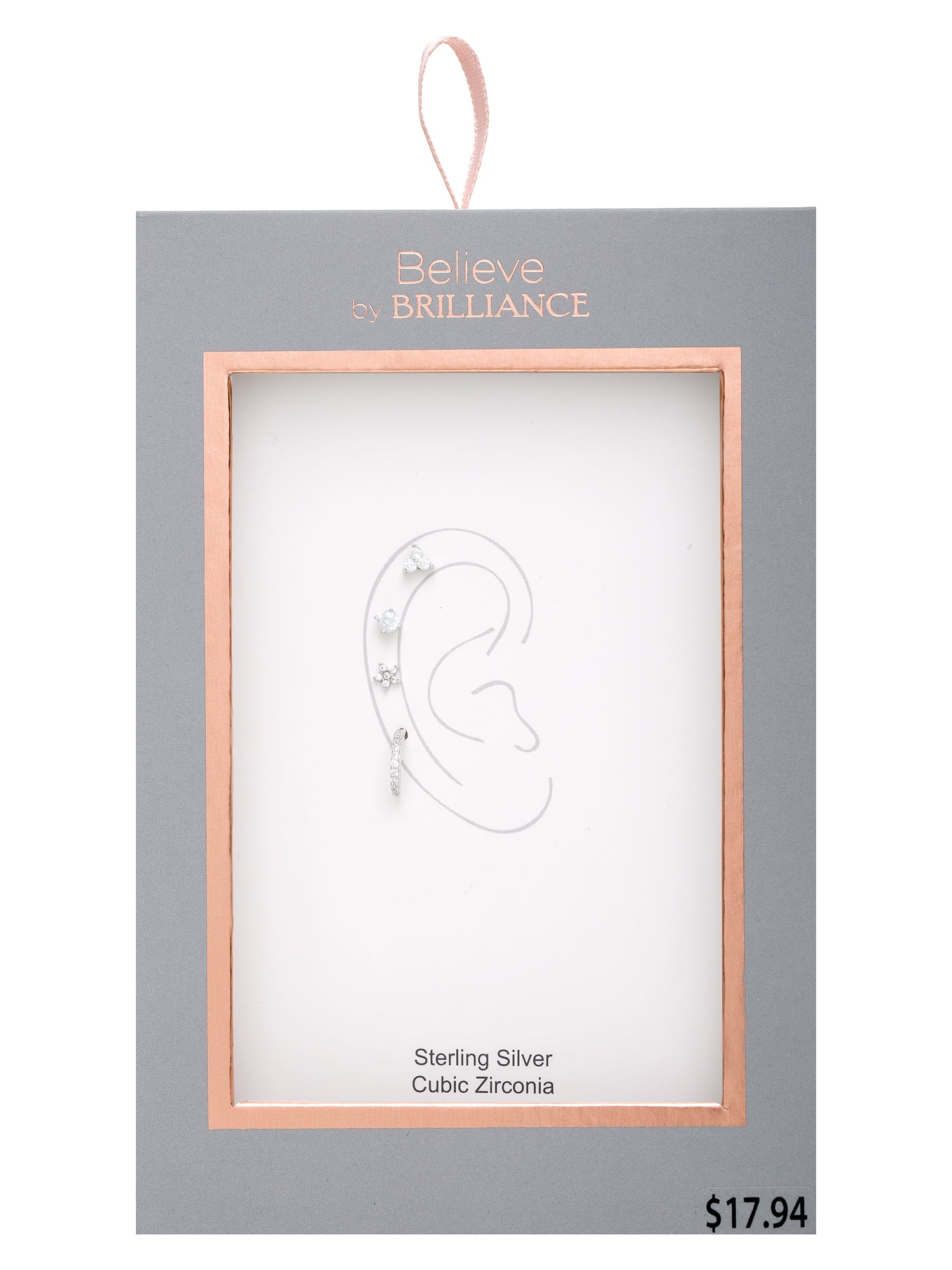 STERLING SILVER CUBIC ZIRCONIA SINGLET CONSTELLATION SET, 4 PIECES