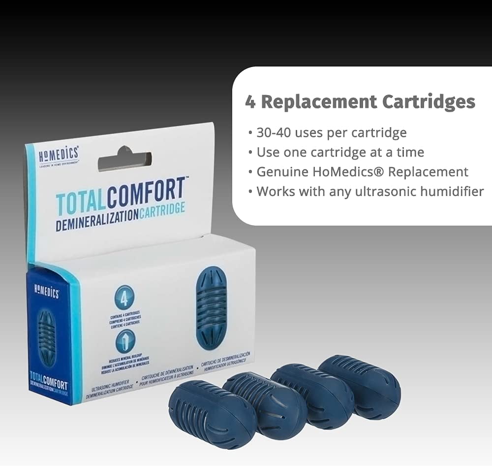 Homedics Demineralization Cartridge for Ultrasonic Humidifiers, 4-Pack Replacement Cartridges, Prevents Hard Water Build-Up and White Dust, UHE-HDC4, 4.0 CT