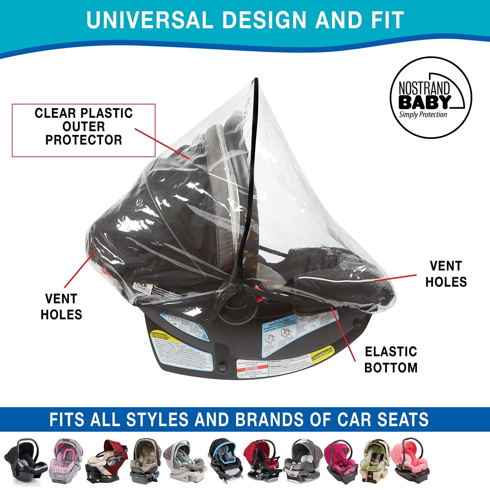 Universal Baby Car Seat Rain Cover Waterproof, Snow and Dust Proof