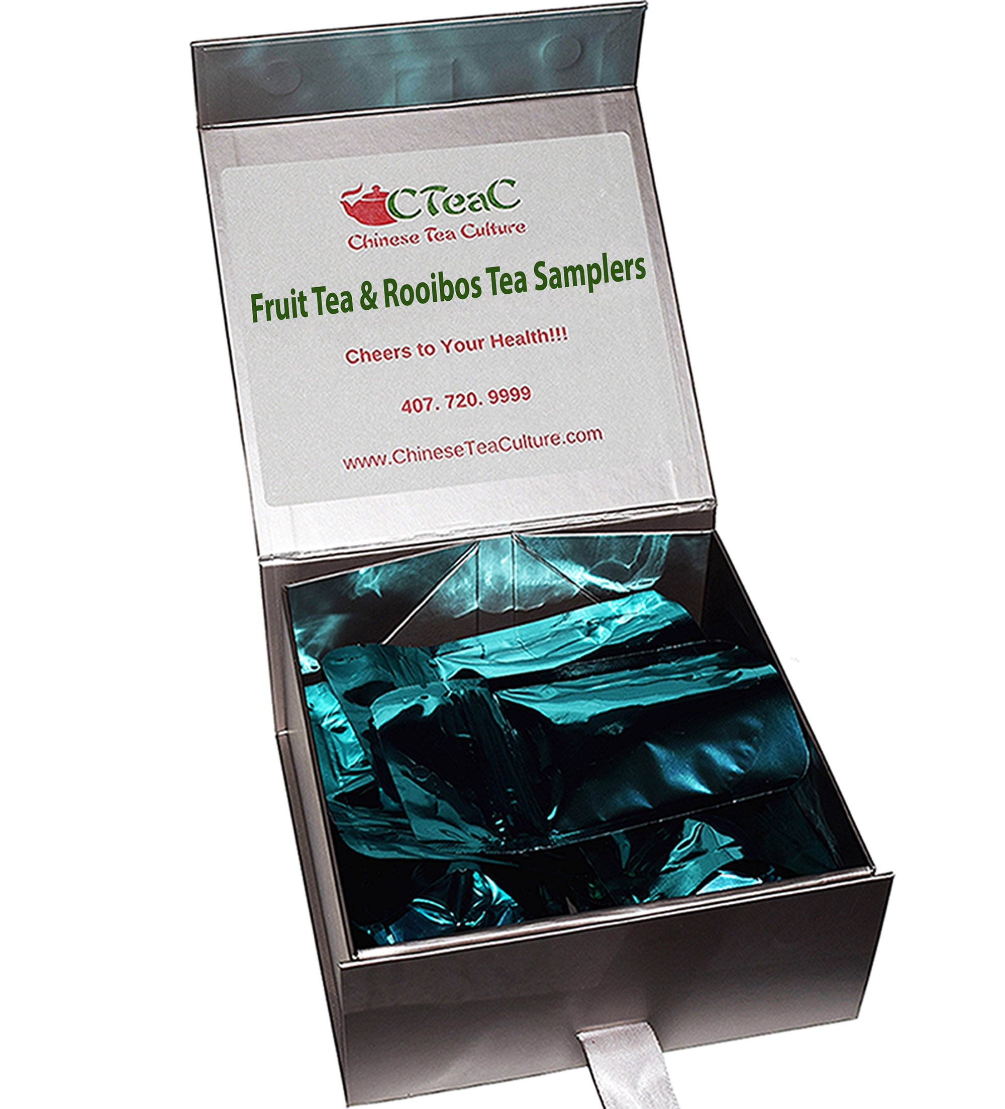 Chinese Tea Culture 8 of Fruit Tea and Rooibos Tea Samplers, Exquisite Gift Box, Decaffeinated, Peach, Blueberry, Cranberry, Juicy Orange, Pineapple, Coconut, Loose Leaf Tea
