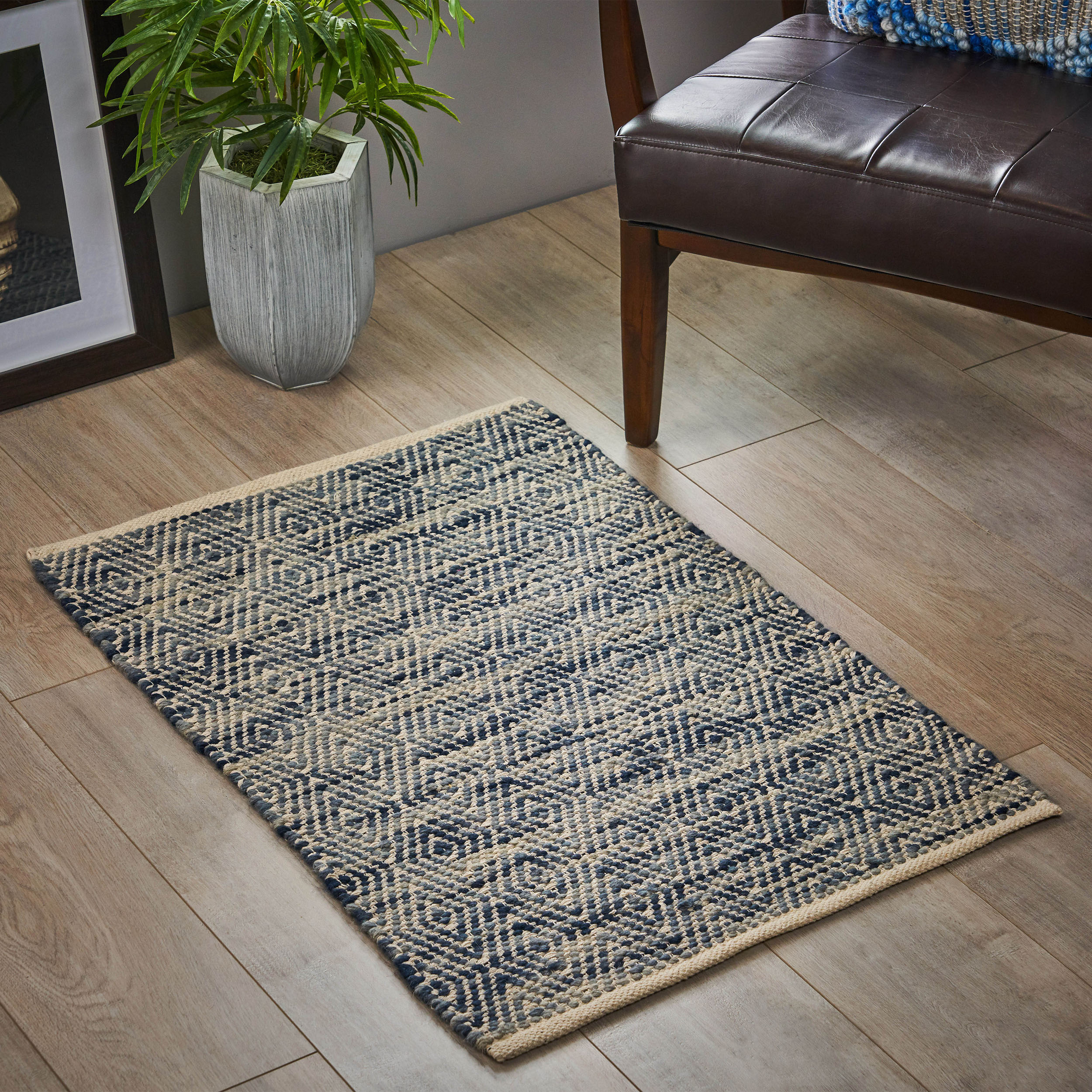 Noble House Zellah Diamond Bohemian Area Rug, Blue, 37.00′ x 24.00′