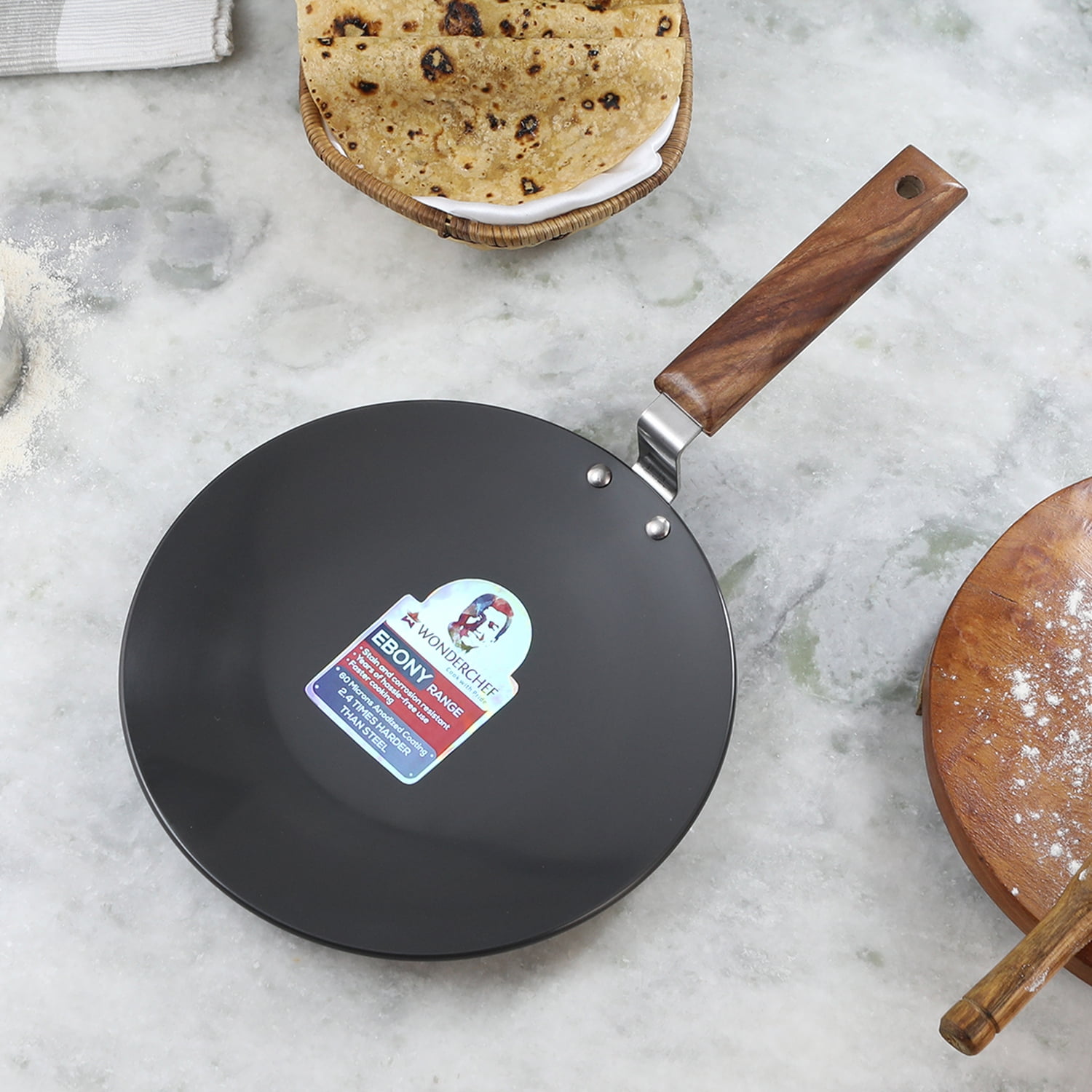 Wonderchef Ebony Anodized Pure Grade Aluminum Non-Stick Roti Crepe Tawa Griddle Pan, 28 cm, Black
