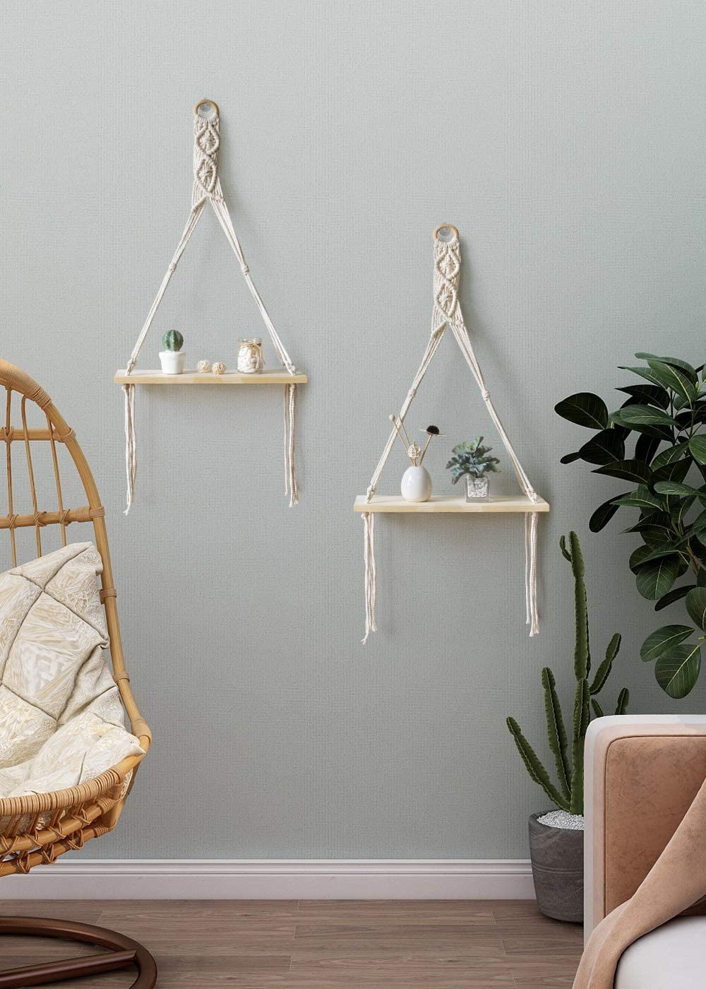 Afuly Macrame Wall Shelves Hanging Boho Floating Shelves Rustic Decor 1 tier Shelves Set of 2