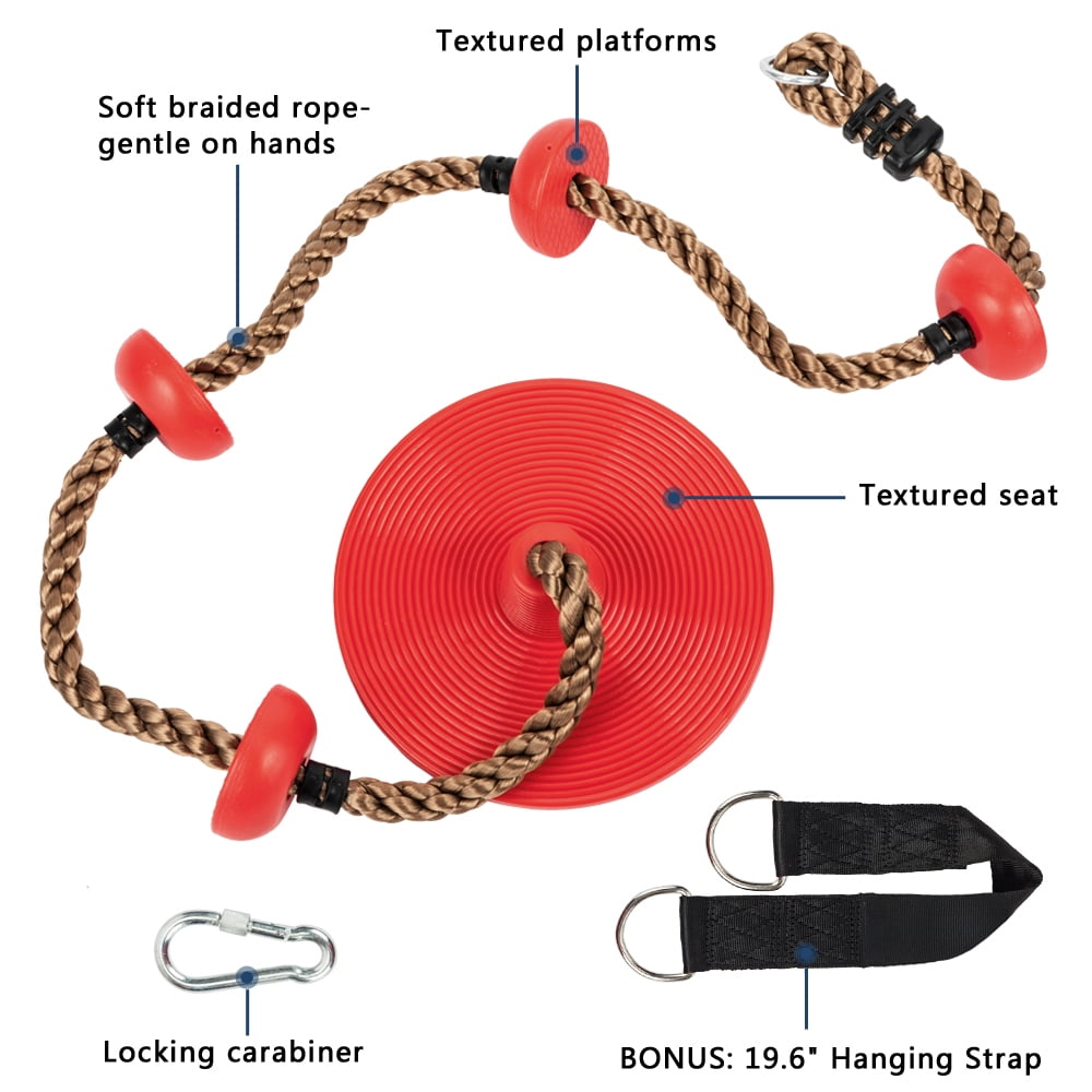 UBesGoo 6.5ft Climbing Rope with Platform and Disc Swing Seat for Backyard Playground