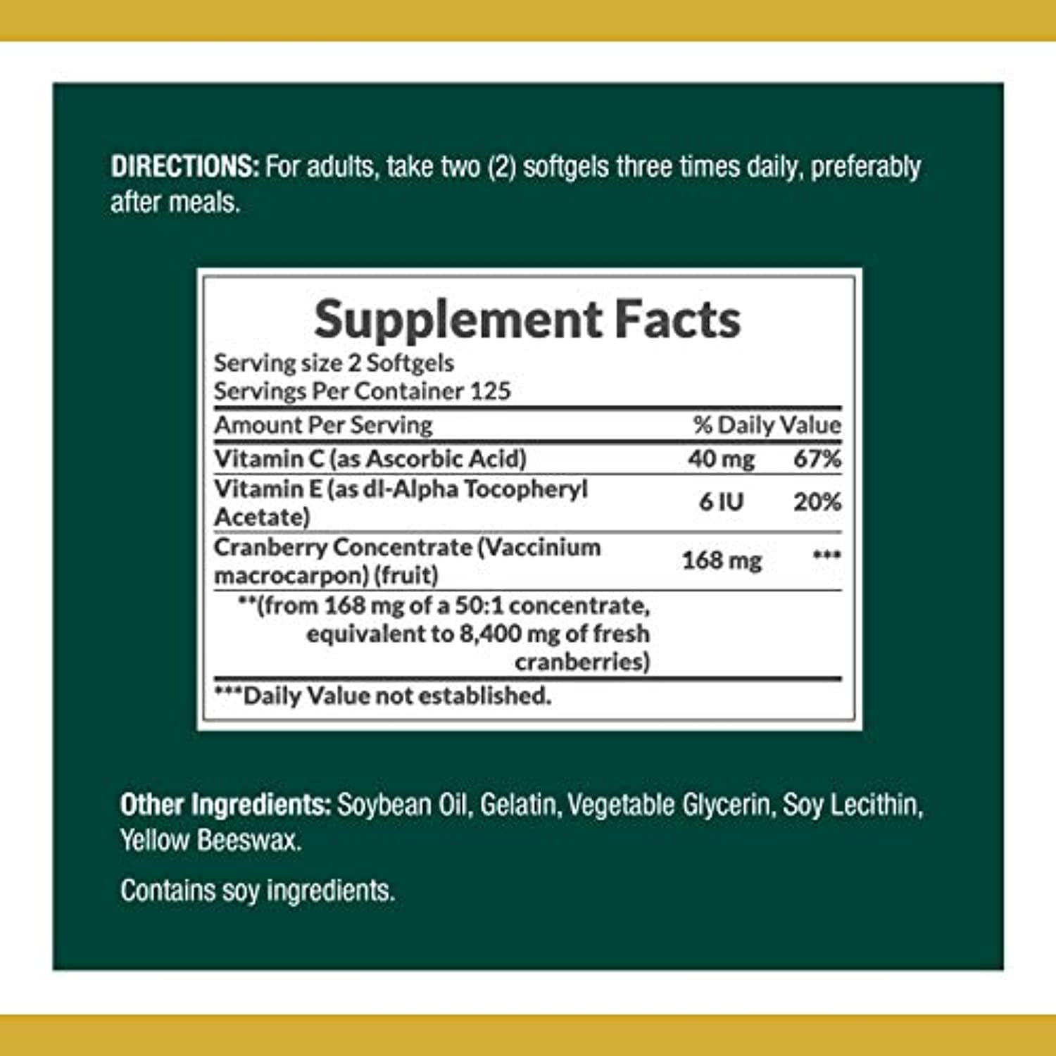 Cranberry Pills W/ Vitamin C By Natures Bounty, Supports Urinary & Immune Health, 4200Mg Cranberry Supplement, 250 Softgels