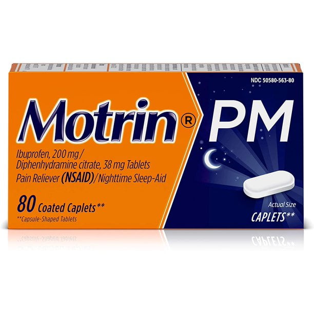 Motrin Pm Ibuprofen 200 Mg Pain Reliever And Nighttime Sleep-Aid Caplets – 80 Ea, 2 Pack