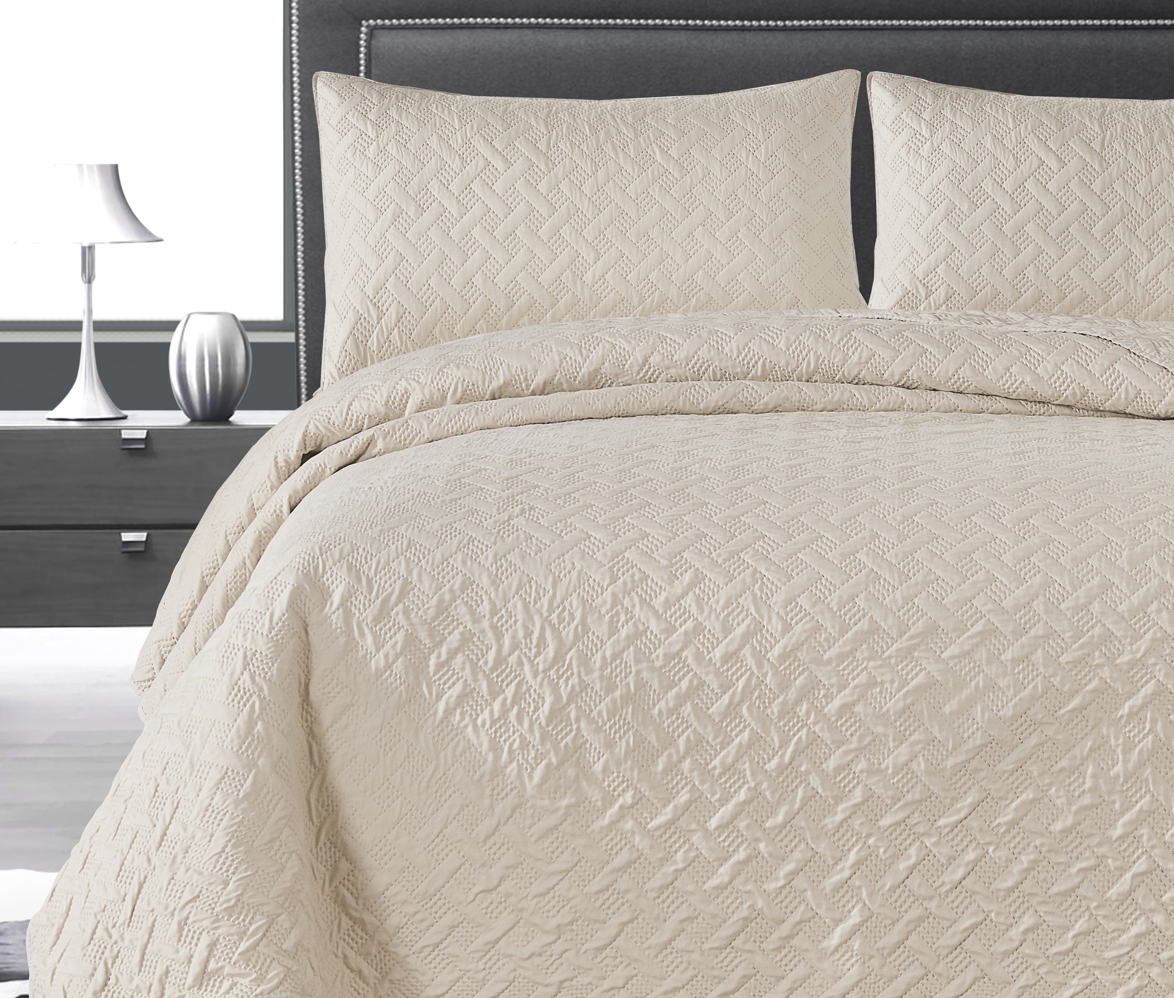 EleganHome 3-Piece Quilt Set Beige Color, Basketweave Pattern Bedspread/Coverlet Queen Size (90’x90′)