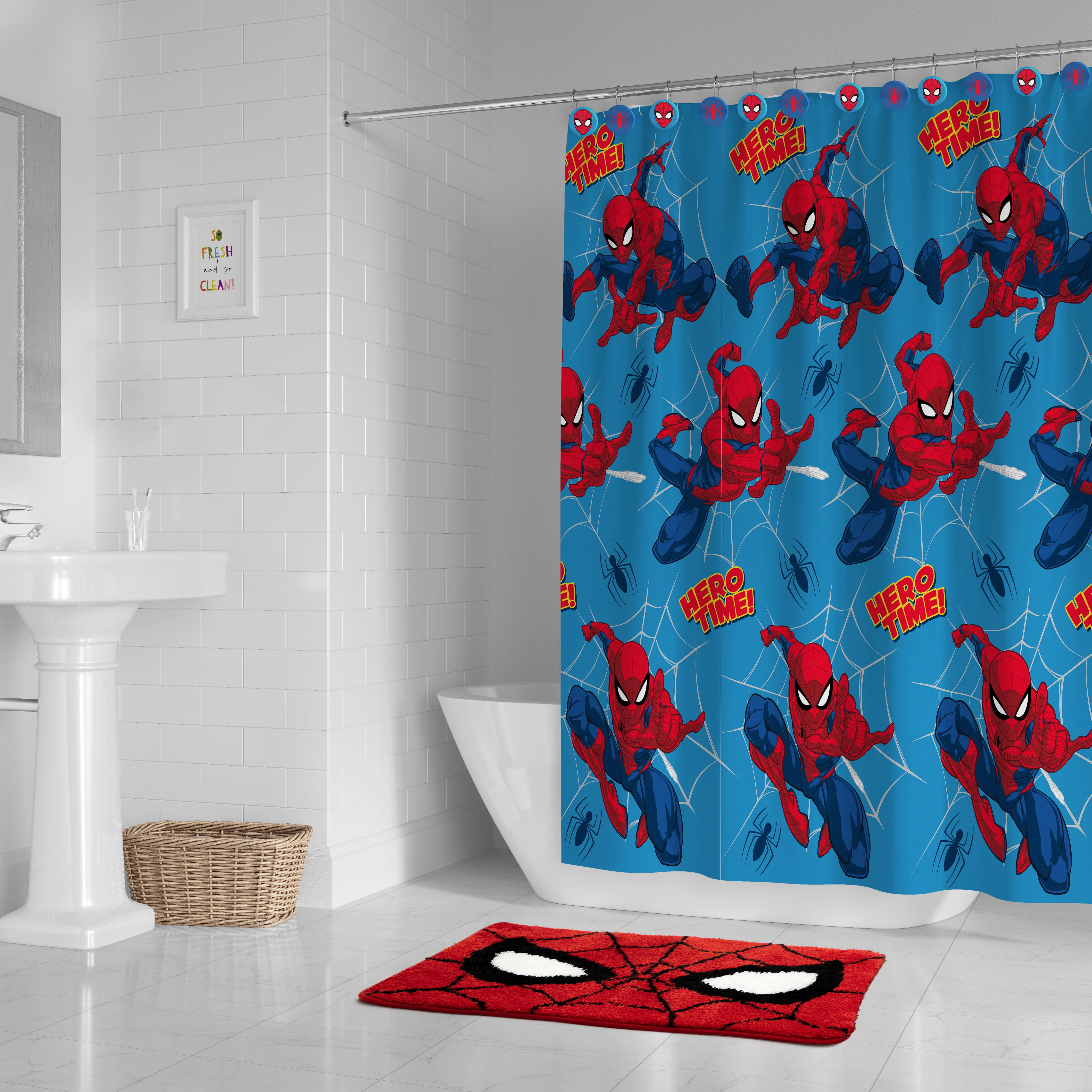 Spider-Man 14-Piece Shower Curtain Set with Tufted Rug, 72 x 72, Microfiber, Red, Marvel
