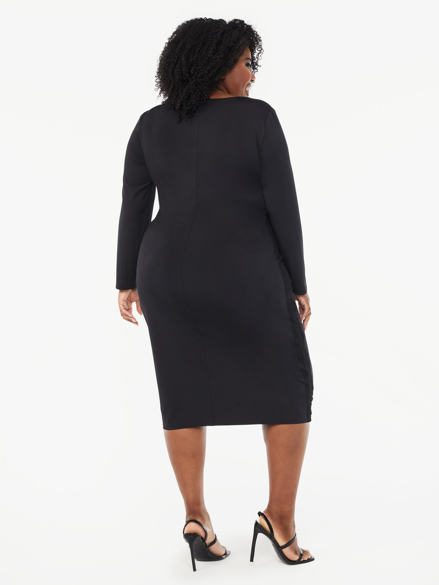 Sofia Jeans by Sofia Vergara Women’s Plus Size Long Sleeve Midi Dress with Lace Trim