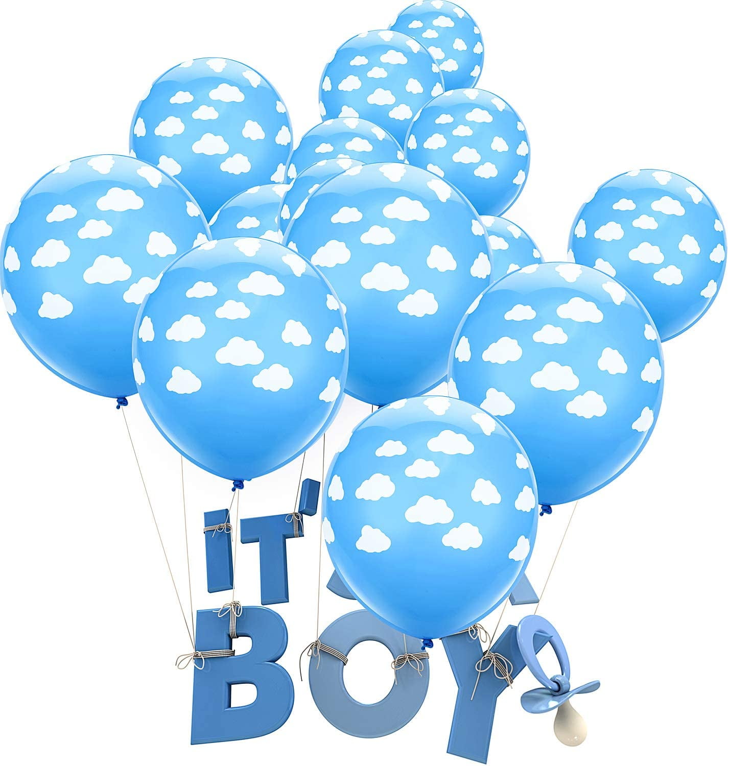 SKU:TOYSGB07V4HFRLP100 Pieces 12 Inch Blue Cloud Latex Balloons With 2 Rolls Plastic Ribbons Mid Blue With Clouds Matte Balloons For Boys Girls Birthday Party Baby Shower Decoration (Style 1)