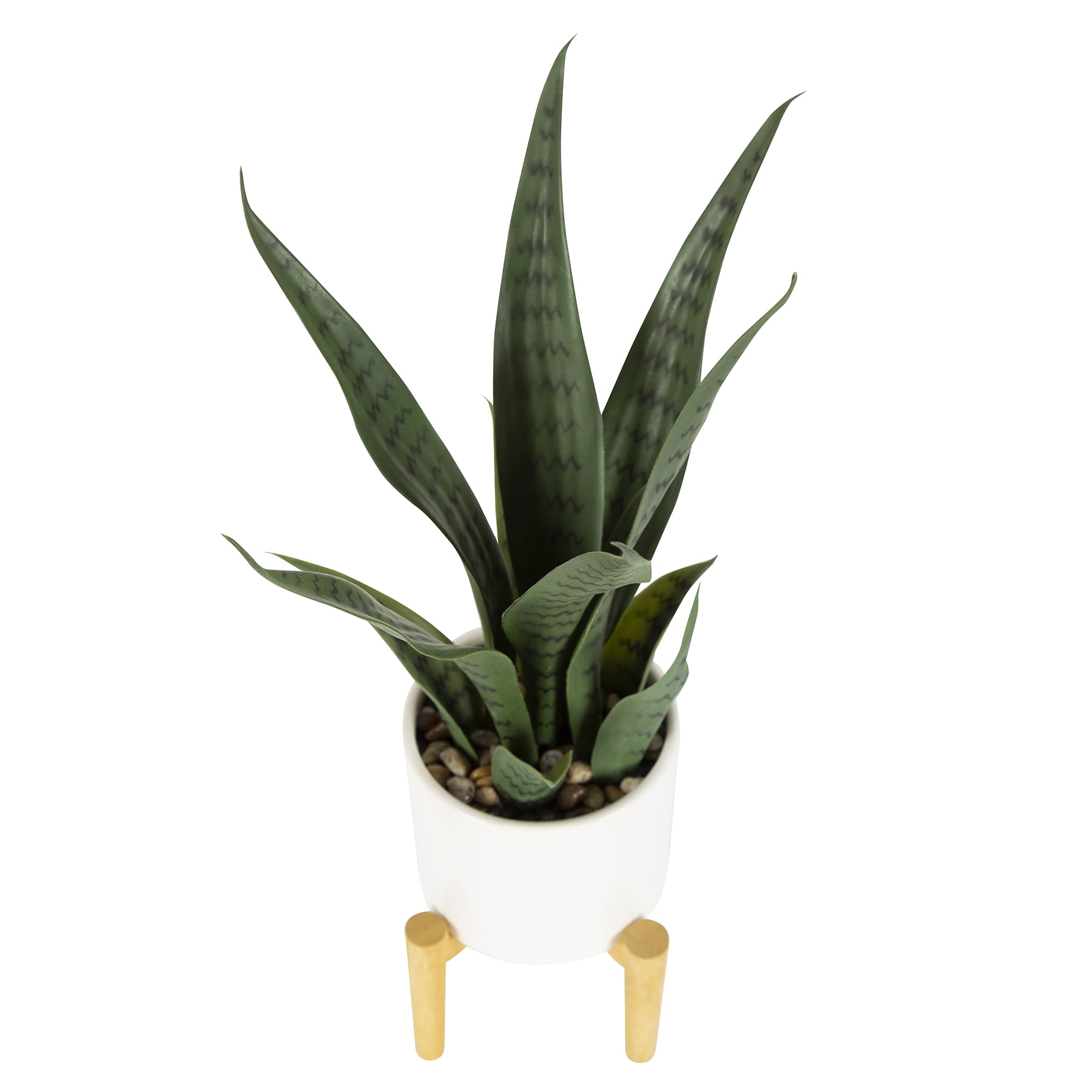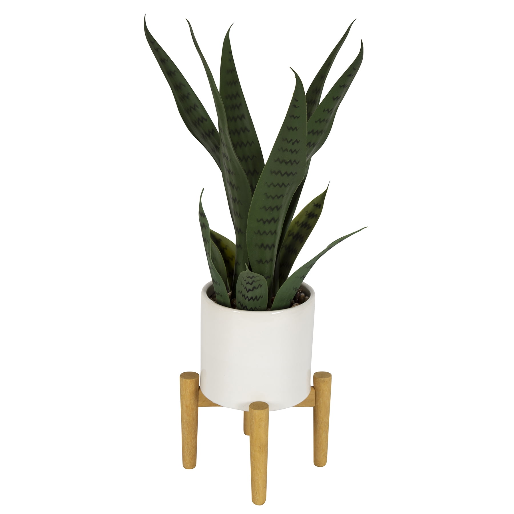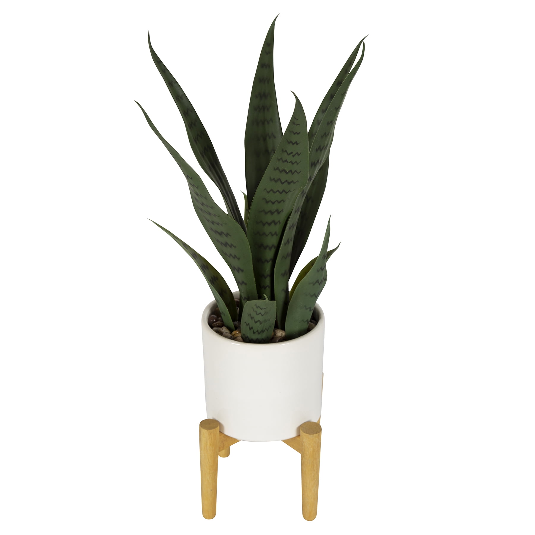 20" Artificial Snake Plant in White Ceramic Pot with Wooden Stand by Better Homes & Gardens