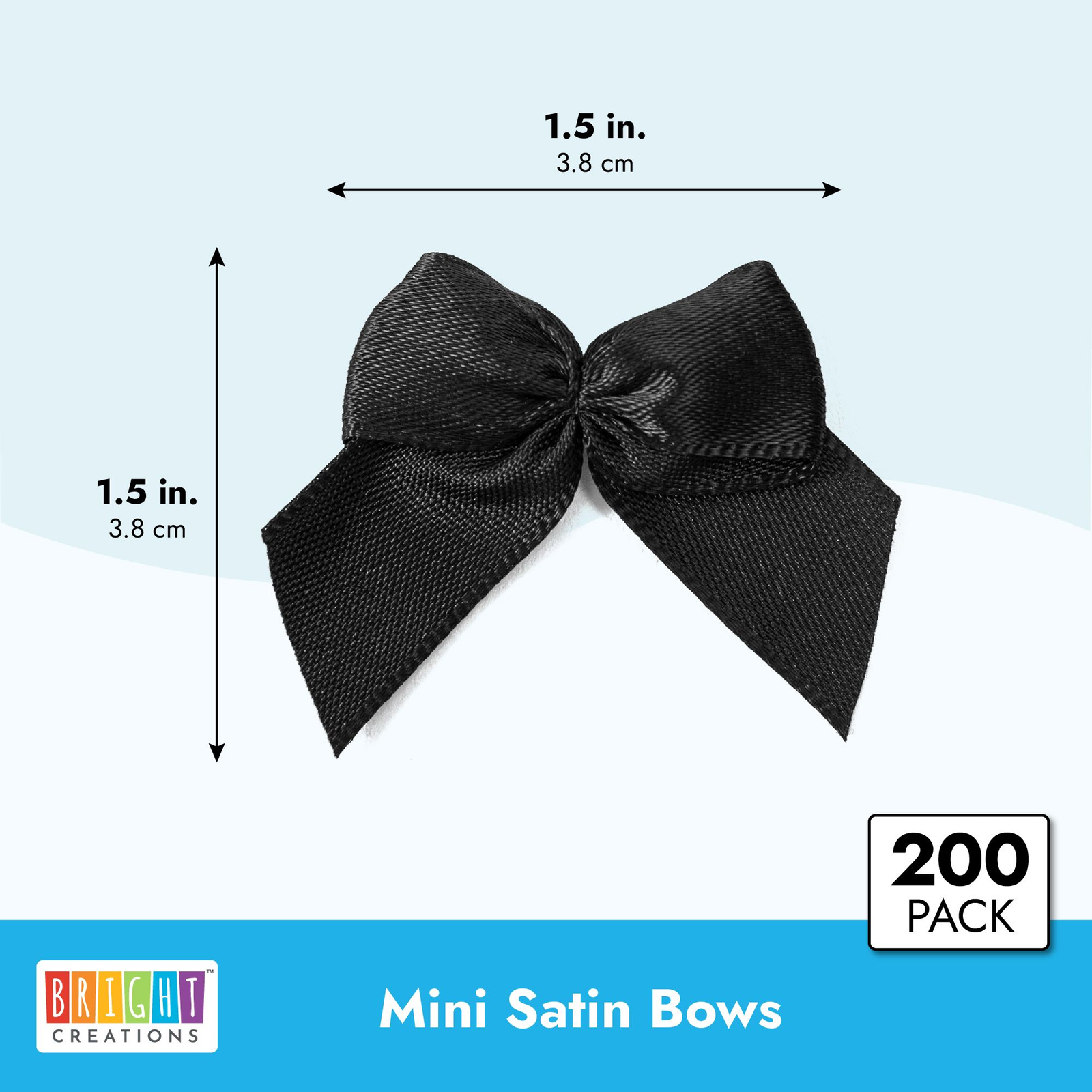 Use these mini bows for crafts, to create personalized wedding favors, embellish party centerpieces, or add the perfect finishing touch to a party favor bag. The self-adhesive tape allows you to easily place the bows onto craft projects, scrapbooks, invitations, or greeting cards. Each black satin bow is made from soft, high-quality satin and polyester material and measures 1.5 inches.