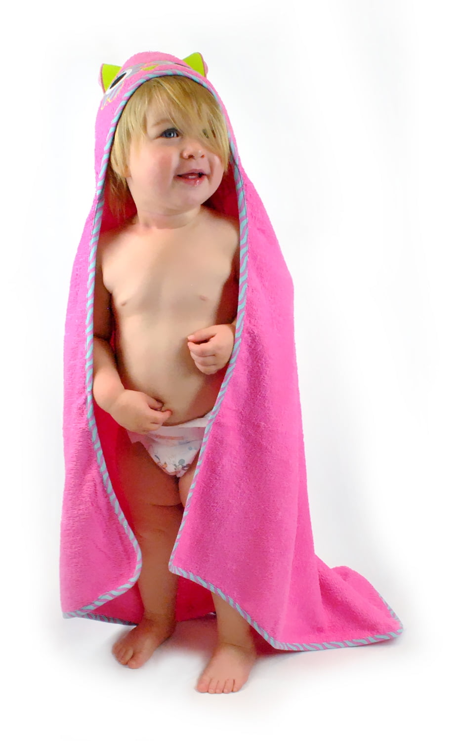 32′ x 32′ Pink Owl Hooded Kids Towel with Piping