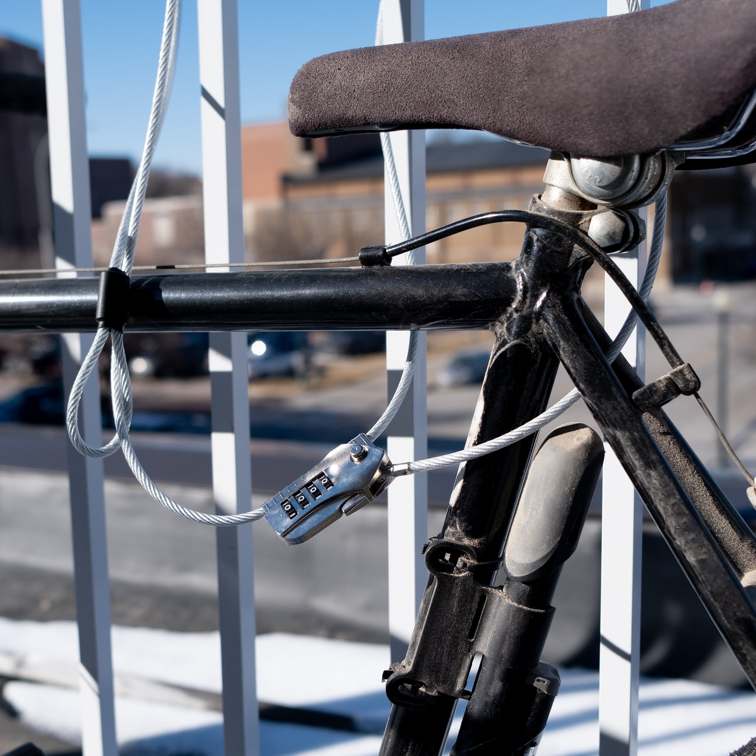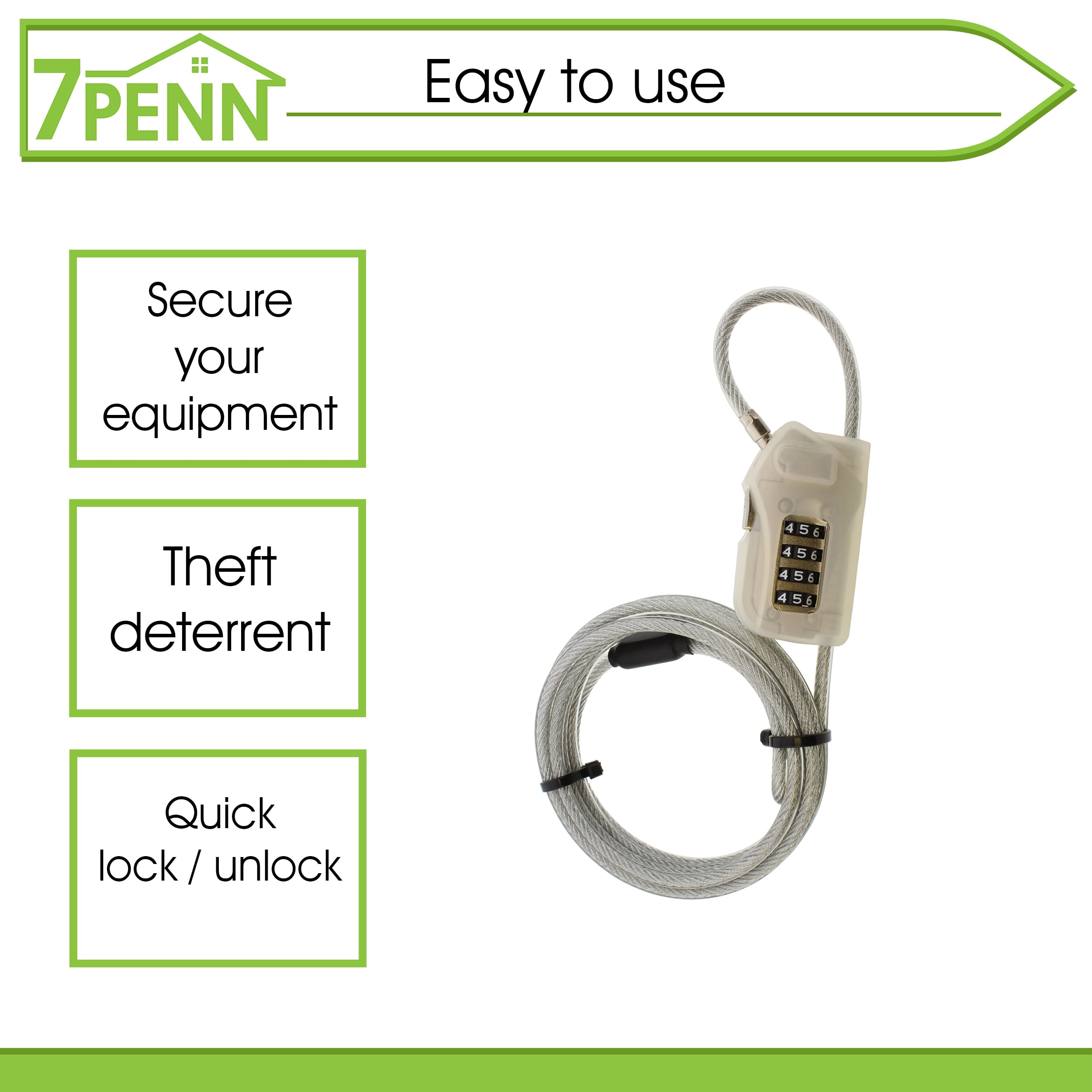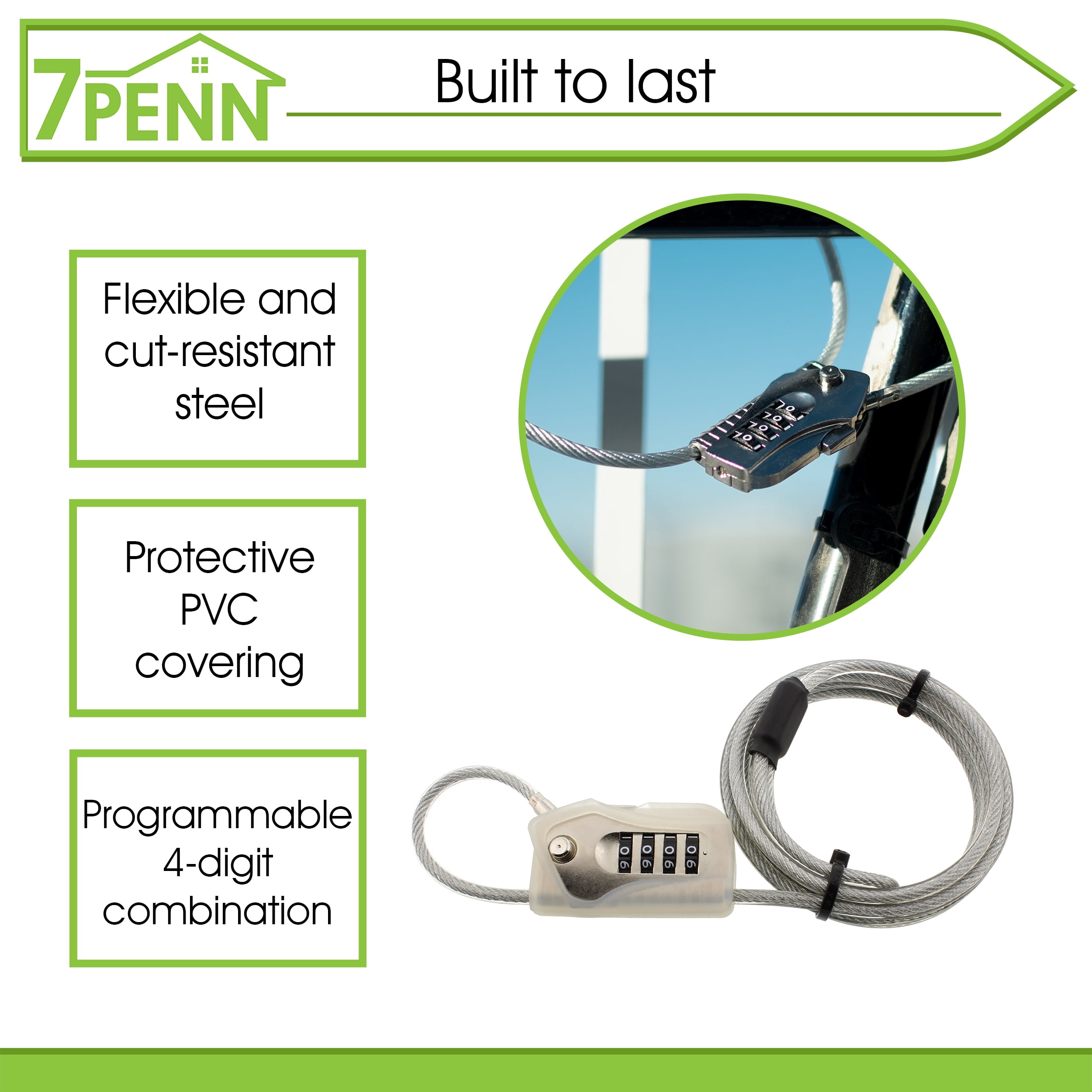 - DETER THIEVES: Use the 7Penn 6.5-Foot Versatile Security Combo Lock to stop a thief in their tracks; Functions as a theft deterrent and a safe lock to ensure that your bike, motorcycle, baby stroller, and other personal valuable belongings stay right where you left them while you are away
