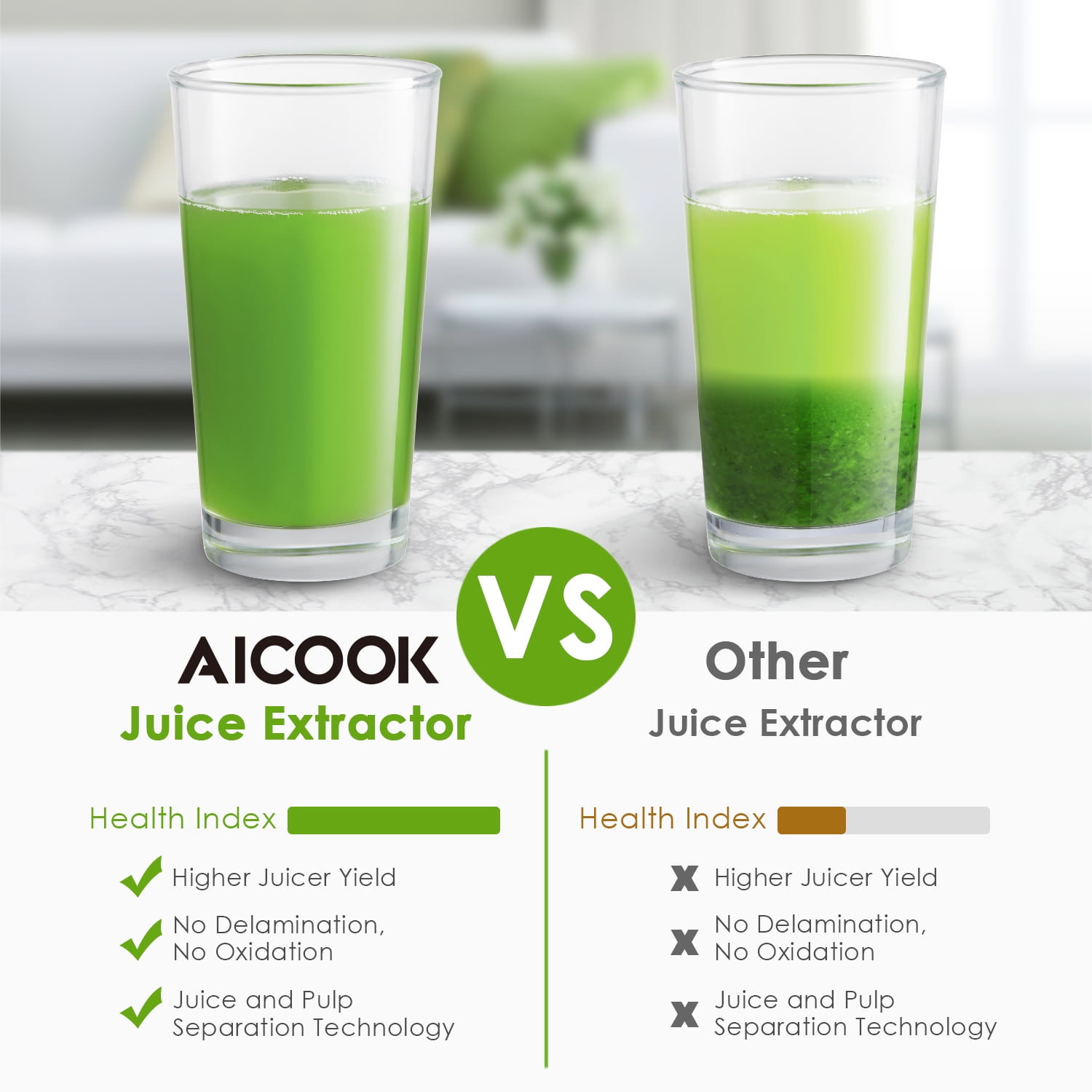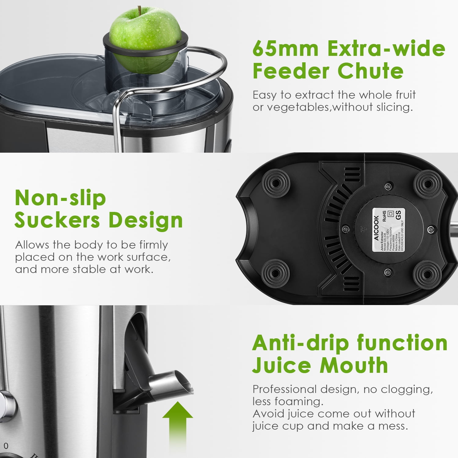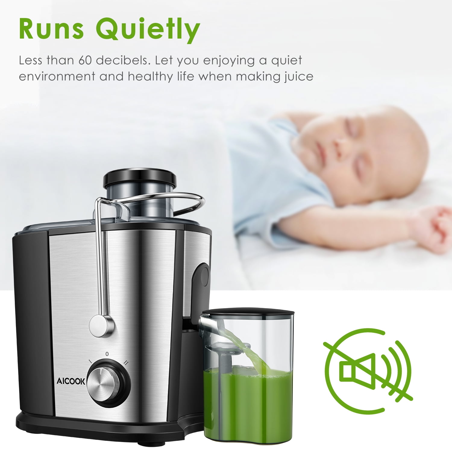 AICOOK Juicer Easy to Clean, 3 ‘ Juice Extractor BPA Free Compact Fruits & Vegetables Juicer, Dual Speed Centrifugal Juicer with Non-drip Function, Stainless Steel Juicers