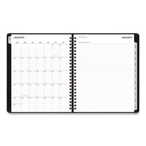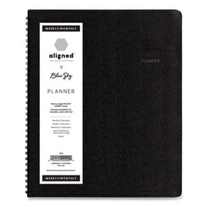 "Unburden your life and accomplish more when you use a 2021 Aligned weekly/monthly planner and notebook, featuring clean layouts and uncluttered writing space. Perfect for professionals, students or those starting a new chapter in life, the Aligned monthly planner is a distraction-free space to organize your schedule. Additional features include an interior storage pocket, yearly overview, reference calendars and several dot grid pages for lists and freeform writing. Calendars are dated January 2021 – December 2021 and include non-tabbed bonus months, so you can get a head start on the new year. For 12 months of durability and strength, Aligned planner covers are crafted with heavyweight PAJCO® material, known for its tear and crease-resistant qualities. With a tastefully monochromatic cover and twin-wire binding, this planner suits any office environment or planning style. "