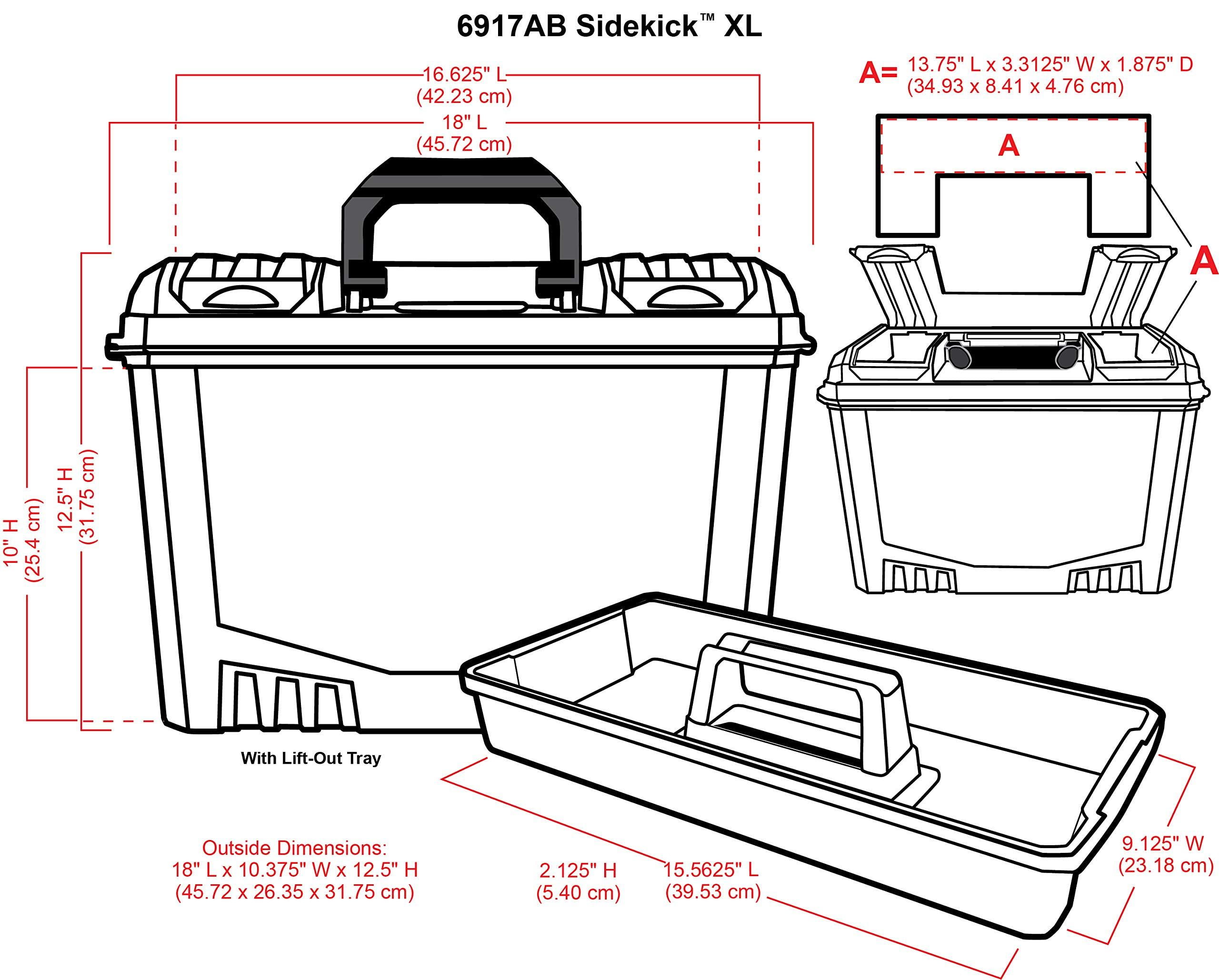 Transport and store supplies safely in this extra-large storage unit. This case features a large capacity lift-out tray and multiple compartments for holding brushes, paints, scissors and other essentials. The lid contains additional storage space for smaller items.Black polypropylene plastic construction, Measures 18" x 9" x 12.5", Lockable for protection when not in use