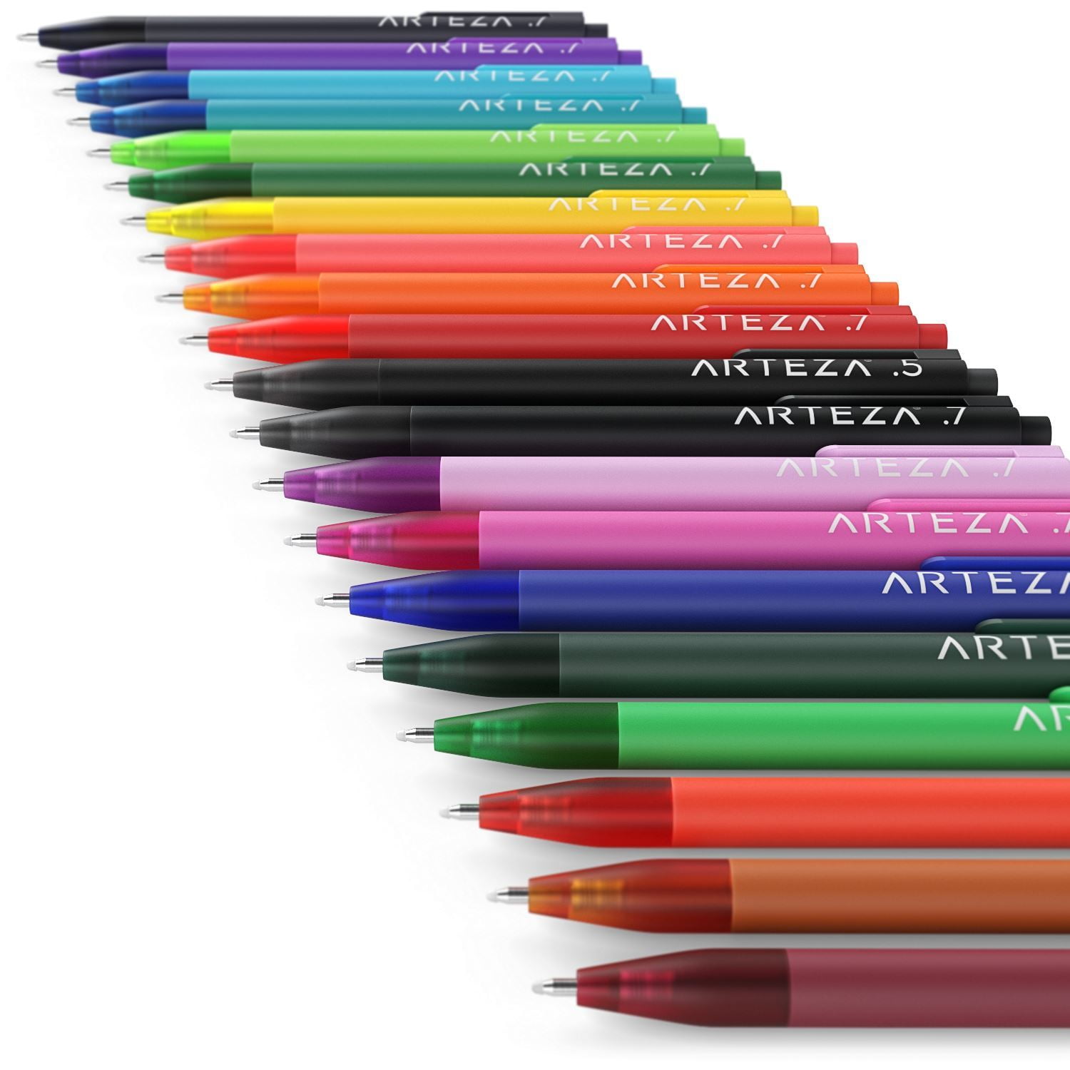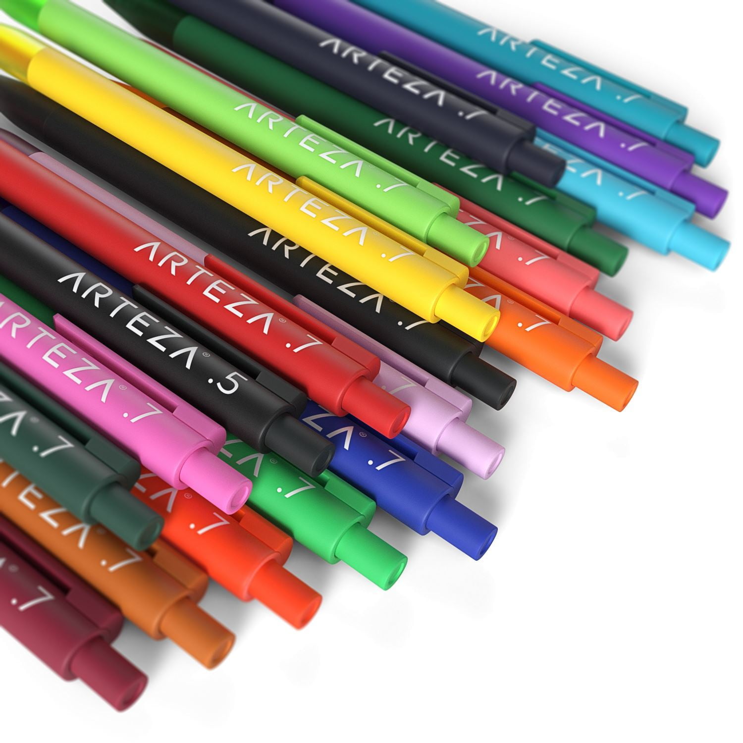 Arteza Retractable Gel Ink Colored Pens Set, Assorted Colors, 20 Pack (ARTZ-8412): With our gel pens set, experience a quick-drying ink that eliminates smears and smudging. These pens offer an uninterrupted writing experience as they won’t scratch or skip. This distinct, non-toxic ink lays down lines of superior color that won’t fade over time. Each pen is wrapped in a soft coating that makes for a comfortable ergonomic grip that reduces hand fatigue.