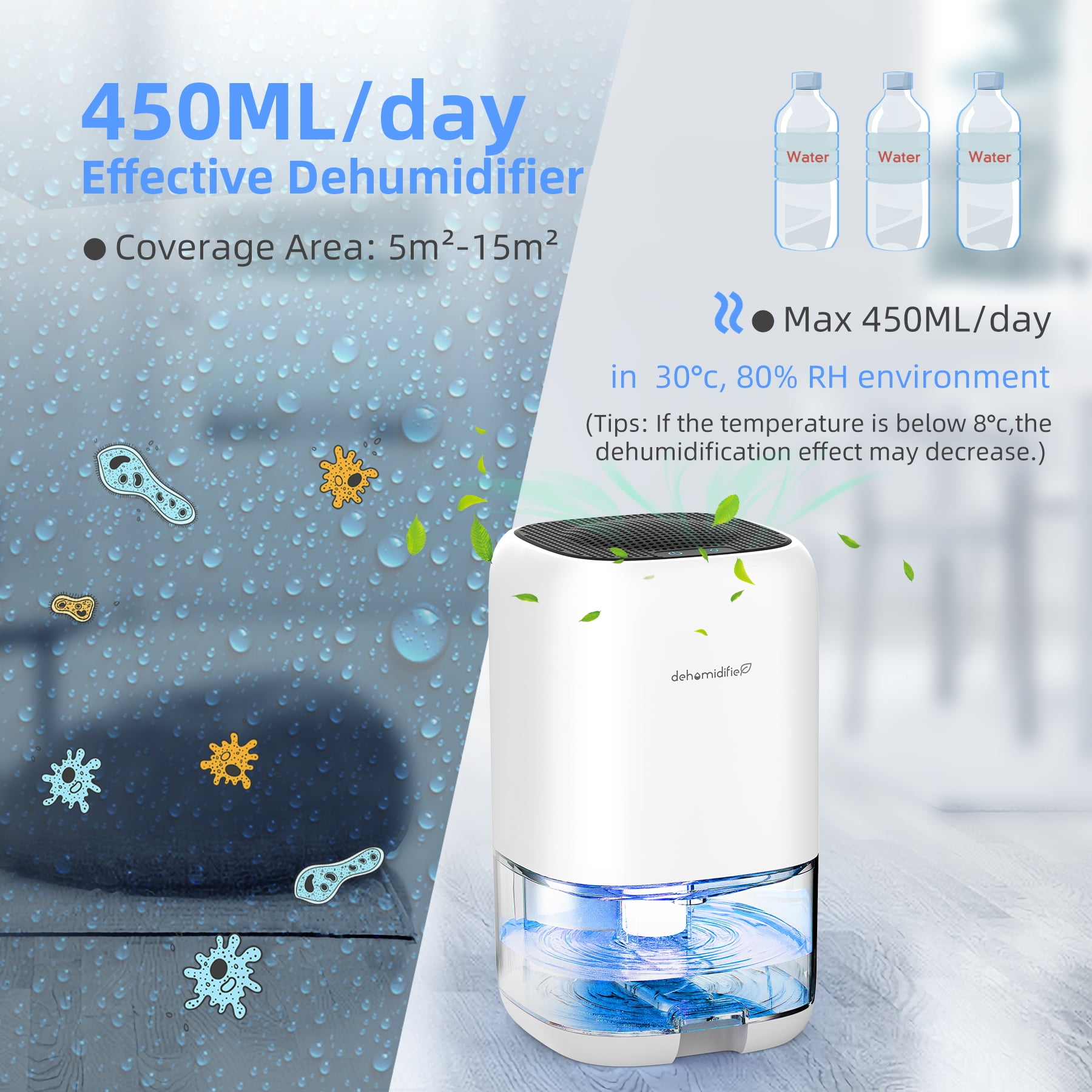 - Ultra-Quiet: Built-in no compressor which perfectly makes the small dehumidifier ultra-quiet. Noise is below 39dB without annoying sound, you can run it all the time in bedrooms, bathrooms, and offices, which gives you a quiet enjoyment!